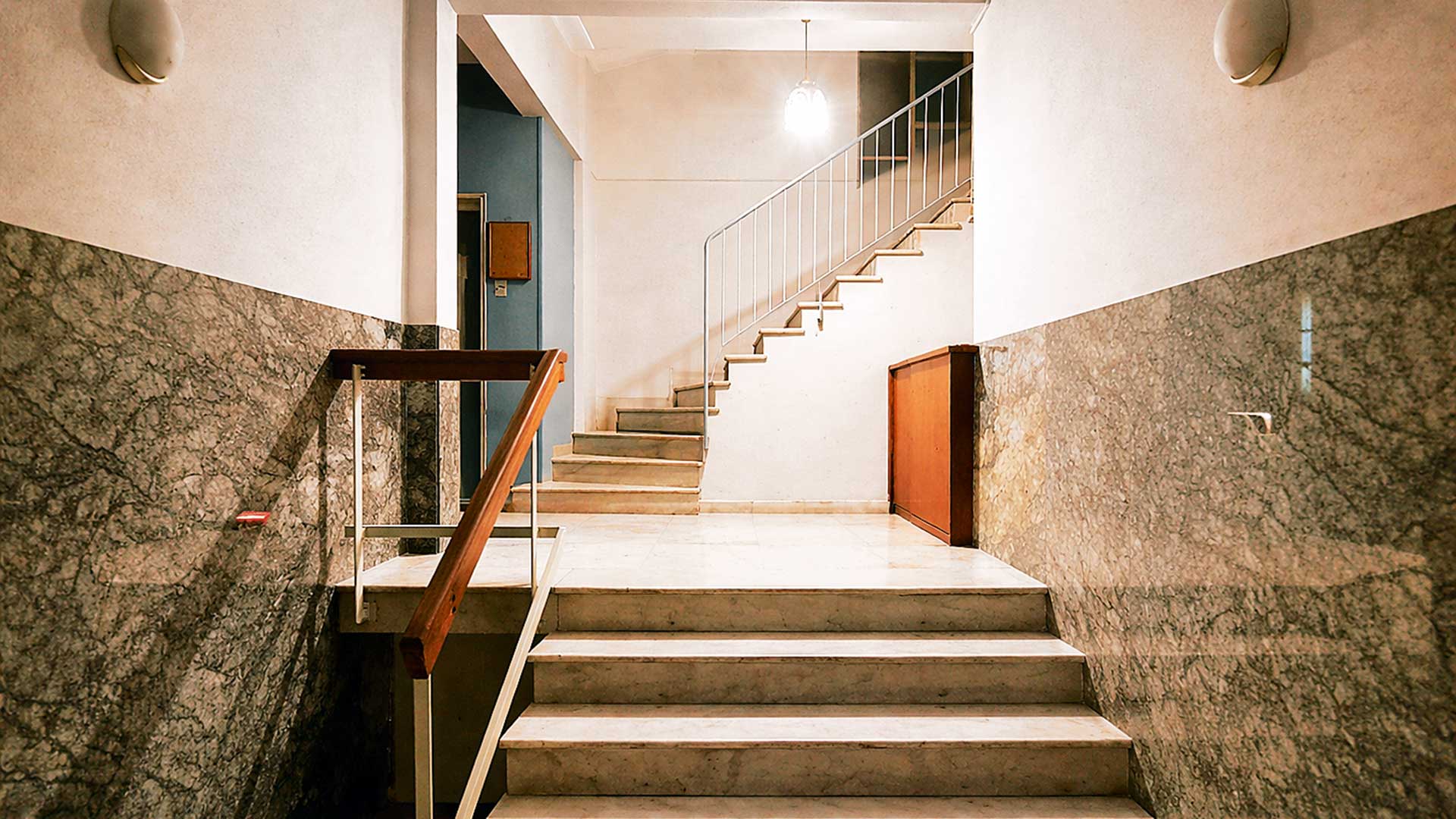 Λαθραίες ματιές σ’ αυτές τις παλιοκαιρινές εισόδους πολυκατοικιών μάς συμφιλιώνουν με μια συνθήκη που γίνεται κοινό κτήμα. Είναι ένας μέσος όρος τόσο αθηναϊκός…