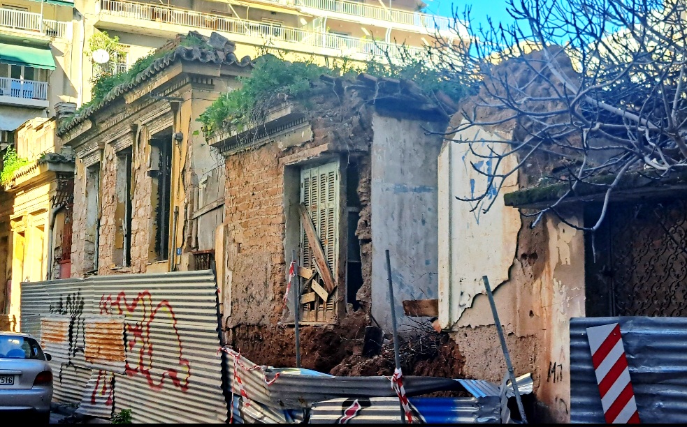 Ωστόσο, έβλεπε κανείς μέχρι πρότινος αυτό το σπάνιο για την Αθήνα σύνολο σε μια σχεδόν ικανοποιητική πληρότητα. Δεν ήταν όλα τα σπίτια ίδιας ποιότητας. Τα πιο πολλά, αυτά που έχουν σχεδόν καταπέσει, ήταν πλινθόκτιστα με λίγες πέτρες στη βάση και λεπτά τούβλα. Το γωνιακό, όμως, προς την οδό Εϋνάρδου, είναι λιθόκτιστο και παρά το προχωρημένο στάδιο της διάλυσης παραμένει ένα ευανάγνωστο και γοητευτικό κατάλοιπο της παλιάς γειτονιάς. Εκεί, όπως αχνοφαίνεται στις επιγραφές, ζωγραφισμένες στον σοβά, θα ήταν κάποιο καφενείο, ή παντοπωλείο, ή έστω μια ταβέρνα. Στη σειρά, τα μικρά σπιτάκια στη Μερσίνης θα στέγαζαν τους ανθρώπους του μεροκάματου, τη χαμηλή κλίμακα της οικονομικής ιεραρχίας στη γειτονιά. Είναι ένα κομμάτι της Ελλάδας των αρχών του 20ού αιώνα που επιβίωνε με κάποιες μεταβολές ώς τη δεκαετία του ’60.