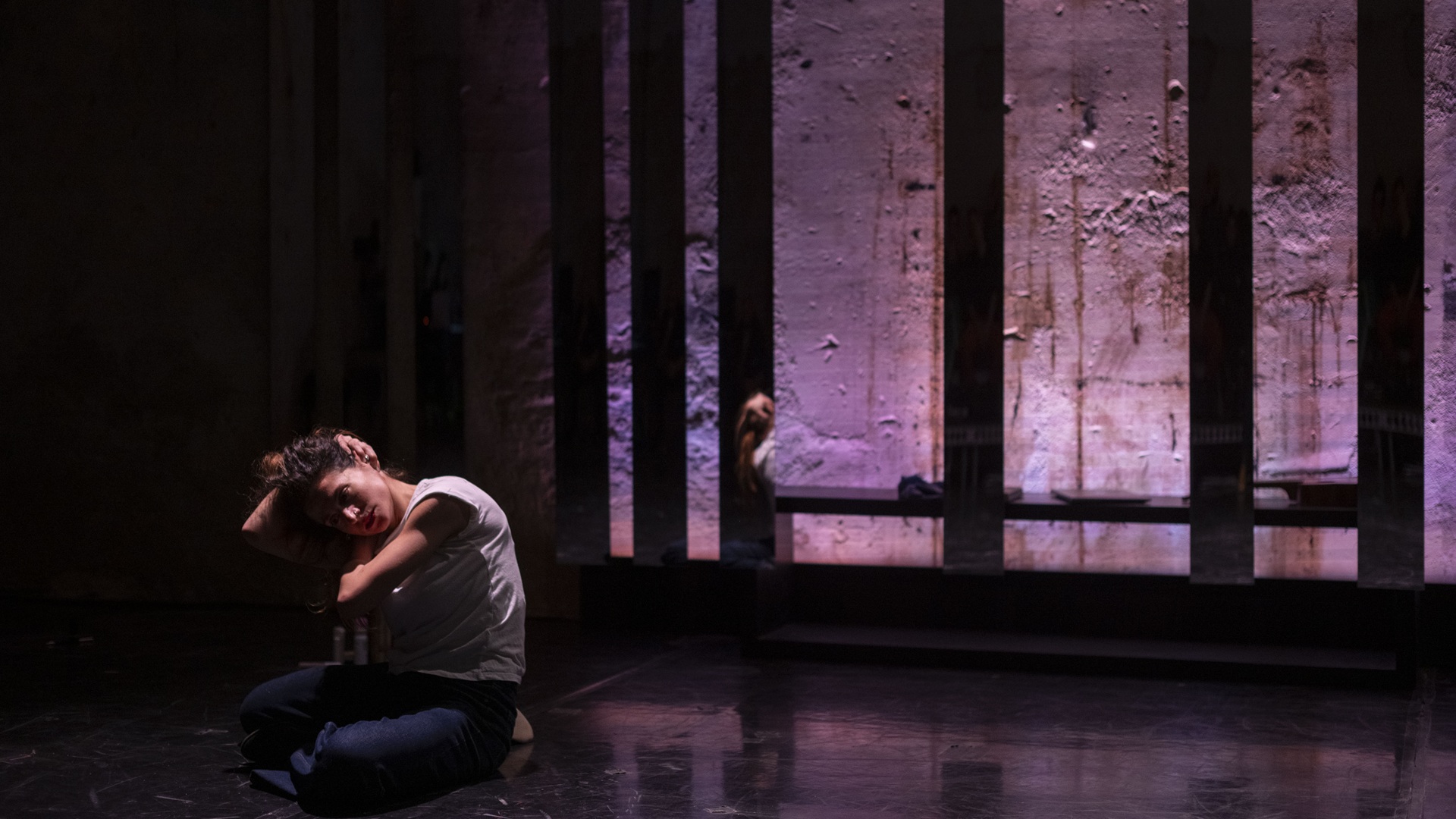 Στη σκηνή, δύο χορευτές (Μάριος Κρητικόπουλος και Ηρώ Κόντη) κινούνται σαν καθρέφτες ο ένας του άλλου, παγιδευμένοι σε μια καθημερινότητα που τους στενεύει. Πριν εκτεθούν στον «έξω» κόσμο, τους βλέπουμε να μένουν μόνοι, να κοιτάζονται ώρα στον καθρέφτη, να παρατηρούν τις ατέλειες, τα σημάδια τους και όσα προσπαθούν να κρύψουν με κρέμες και μακιγιάζ. Η κίνησή τους σκληραίνει σταδιακά και καθώς ντύνονται και χτενίζουν τα μαλλιά τους γίνεται κοφτή και νευρική, σαν να συμπυκνώνει την πίεση μιας ολόκληρης ημέρας.