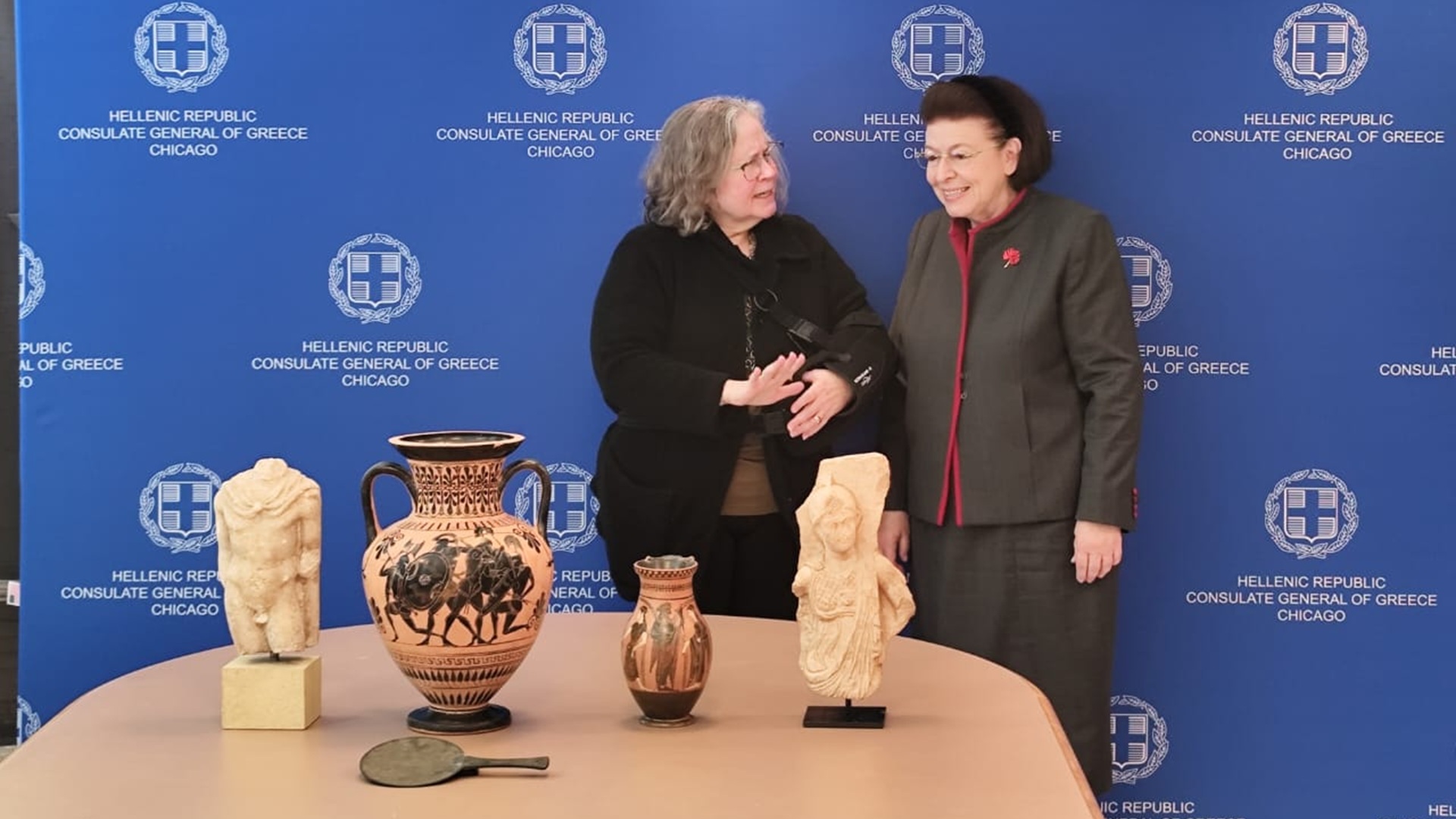 Πέντε αρχαιότητες που επαναπατρίζονται από τις Ηνωμένες Πολιτείες παρέλαβε χθες, Δευτέρα, η υπουργός Πολιτισμού Λίνα Μενδώνη σε ειδική τελετή, στο Γενικό Προξενείο της Ελλάδας στο Σικάγο.