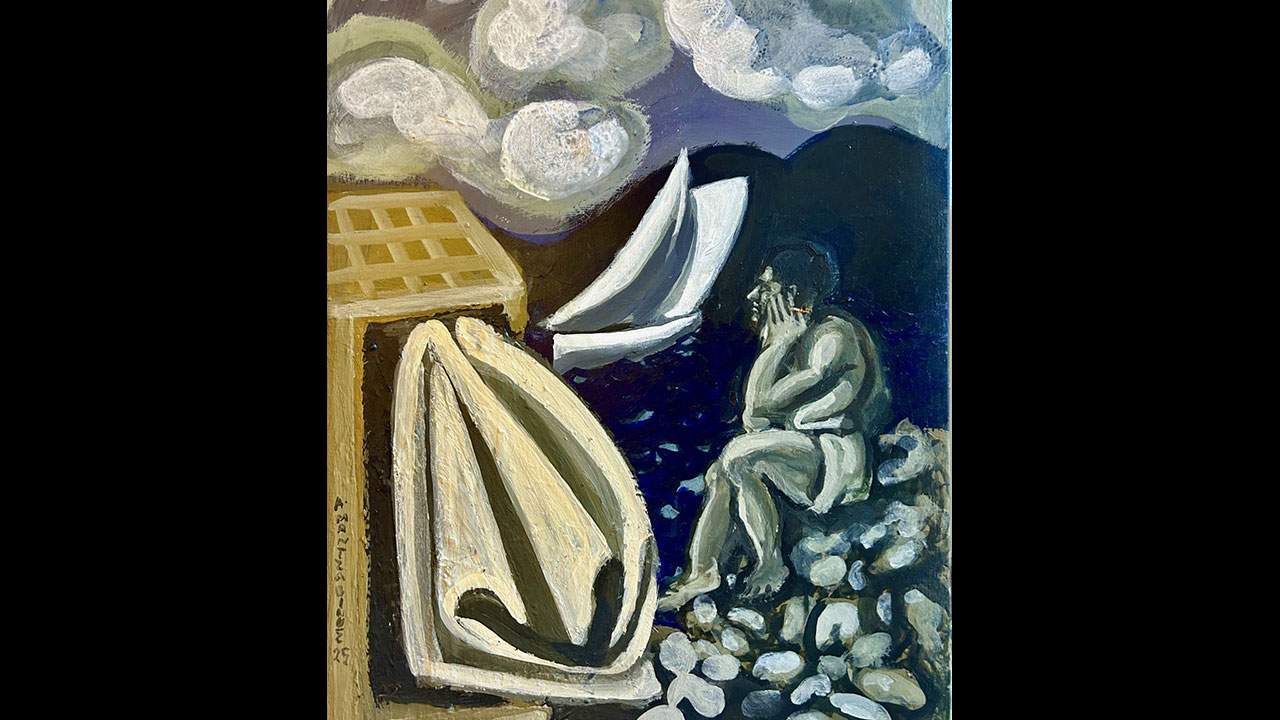 Η Γκαλερί Σκουφά παρουσιάζει την ατομική έκθεση του Τάσου Μαντζαβίνου με τίτλο «Παρά θιν’ αλός» (φωτογραφία). Οι γνώριμες φιγούρες του Μαντζαβίνου –ναυτικοί, καΐκια, γυναίκες που περιμένουν, άνεμοι που ευνοούν ή διώχνουν– συνθέτουν ένα υδάτινο σύμπαν όπου οι ανθρώπινες μορφές μοιάζουν να στέκουν μπροστά σε κάτι που τις ξεπερνά. 10 π.μ. – 9 μ.μ.