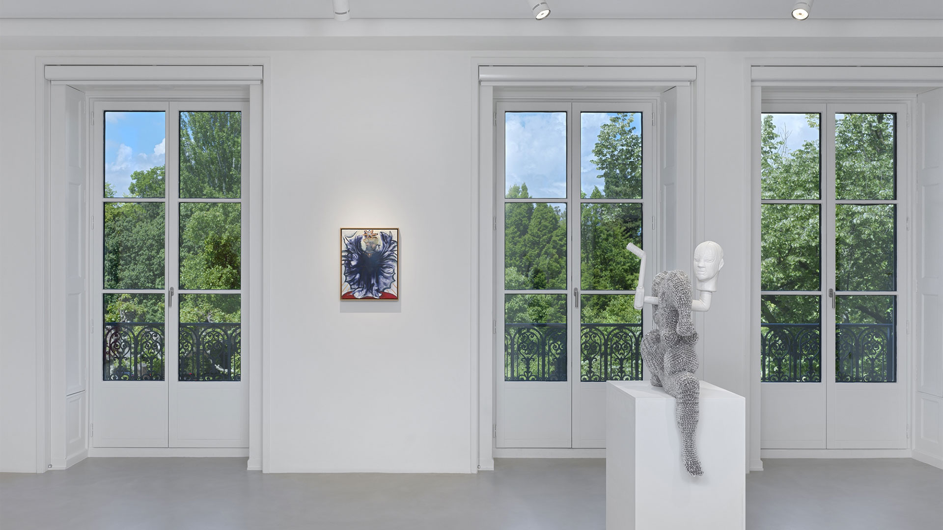 Το πρίσμα μέσα από το οποίο προσεγγίστηκε το θέμα της έκθεσης είναι ότι η τέχνη είναι μια μορφή σύγχρονης αλχημείας, όπου τα υλικά μεταμορφώνονται σε κάτι πνευματικό, ουσιαστικό. «Η τέχνη γίνεται ένας μεσολαβητής ανάμεσα σε δύο κόσμους, τον υλικό και τον πνευματικό», υποστηρίζει η Αλκηστις Τσαμπουράκη. Στην κουβέντα μπαίνει και η ιδιοκτήτρια της γκαλερί, Τέα Μοντότι ντ’ Αρκούρτ Λυγινός, σχολιάζοντας πως η περιδιάβαση στην έκθεση λειτουργεί λίγο σαν υπενθύμιση όσων έχουμε αφήσει στην άκρη. «Η εποχή δεν μας επιτρέπει να ακούσουμε την εσωτερική μας φωνή, απομακρυνόμαστε από τη φύση, τους άλλους, τις βαθύτερες ανάγκες μας, ξεχνάμε ό,τι έχει προηγηθεί», αναφέρει. Μου εξηγεί ότι ξεκίνησε την πορεία της στον χώρο της τέχνης από το Sotheby’s του Λονδίνου, επέστρεψε στη Γενεύη, εργάστηκε στην Gagosian και έπειτα, όταν έμεινε έγκυος στο πρώτο της παιδί, άρχισε να κάνει art advisory, το οποίο και συνέχισε για αρκετά χρόνια, μέχρι που συνειδητοποίησε ότι η σχέση με τους πελάτες της δεν της αρκούσε και επιθυμούσε τον διάλογο με τους καλλιτέχνες, τη χαρά που κρύβει η επιμέλεια μιας έκθεσης, η ανάπτυξη μιας ιδέας μέσα από ξεχωριστές φωνές και έργα. Η έκθεση που εγκαινίασε την γκαλερί τον περασμένο Οκτώβριο –ένα διαμέρισμα του 18ου αιώνα που κάποτε λειτουργούσε και σαν σοκολατοποιία– ήταν η «Sound and Silence», ένας διάλογος ανάμεσα στον Takis και στην Υβ Ντάνα. Τη ρωτώ γιατί δείχνει τόσο έντονο ενδιαφέρον για την ελληνική τέχνη – η τρέχουσα έκθεση φιλοξενεί έργα των Αλέκου Φασιανού, Γιάννη Βαρελά, Ελένης Χριστοδούλου, Κωνσταντίνας Κρικζώνη και Σοφίας Μιτσώλα. «Σίγουρα το ότι είμαι παντρεμένη με Ελληνα επηρεάζει την κρίση μου, την Ελλάδα τη νιώθω σαν δεύτερο σπίτι μου», λέει γελώντας. «Ωστόσο, διακρίνω ένα βάθος και μια πνευματικότητα στο έργο των Ελλήνων που δεν την αναγνωρίζω, για παράδειγμα, στους Αμερικανούς. Υπάρχουν επίπεδα στο έργο τους, σου επιτρέπουν πολλαπλές αναγνώσεις και εδώ το θέμα προσφέρεται για συνδέσεις με αυτά που μας απασχολούν». Στέκομαι και κοιτάζω το «Eclipse» της Σοφίας Μιτσώλα, μια αέρινη γυναικεία φιγούρα σε προφίλ που κρύβει το φεγγάρι. Η παλέτα της και η αισθητική της παραπέμπει στον Παρθένη, αν και πουθενά δεν υπάρχει τέτοια αναφορά στον κατάλογο. Μέσα στο βαθύ μπλε του φόντου της διακρίνω μία ακόμα μορφή – τι μπορεί να είναι αυτό, μια συνομιλία με τον εαυτό της, με έναν απαγορευμένο έρωτα; «Σε μια εποχή όπου όλα μετριούνται και εξηγούνται, η έκθεση αυτή μας θυμίζει ότι δεν χρειάζεται –και δεν γίνεται– όλα να κατανοηθούν», μου απαντά η Αλκηστις Τσαμπουράκη. «Κάποια πράγματα είναι φτιαγμένα για να βιώνονται, να φαντάζονται και να αισθάνονται».