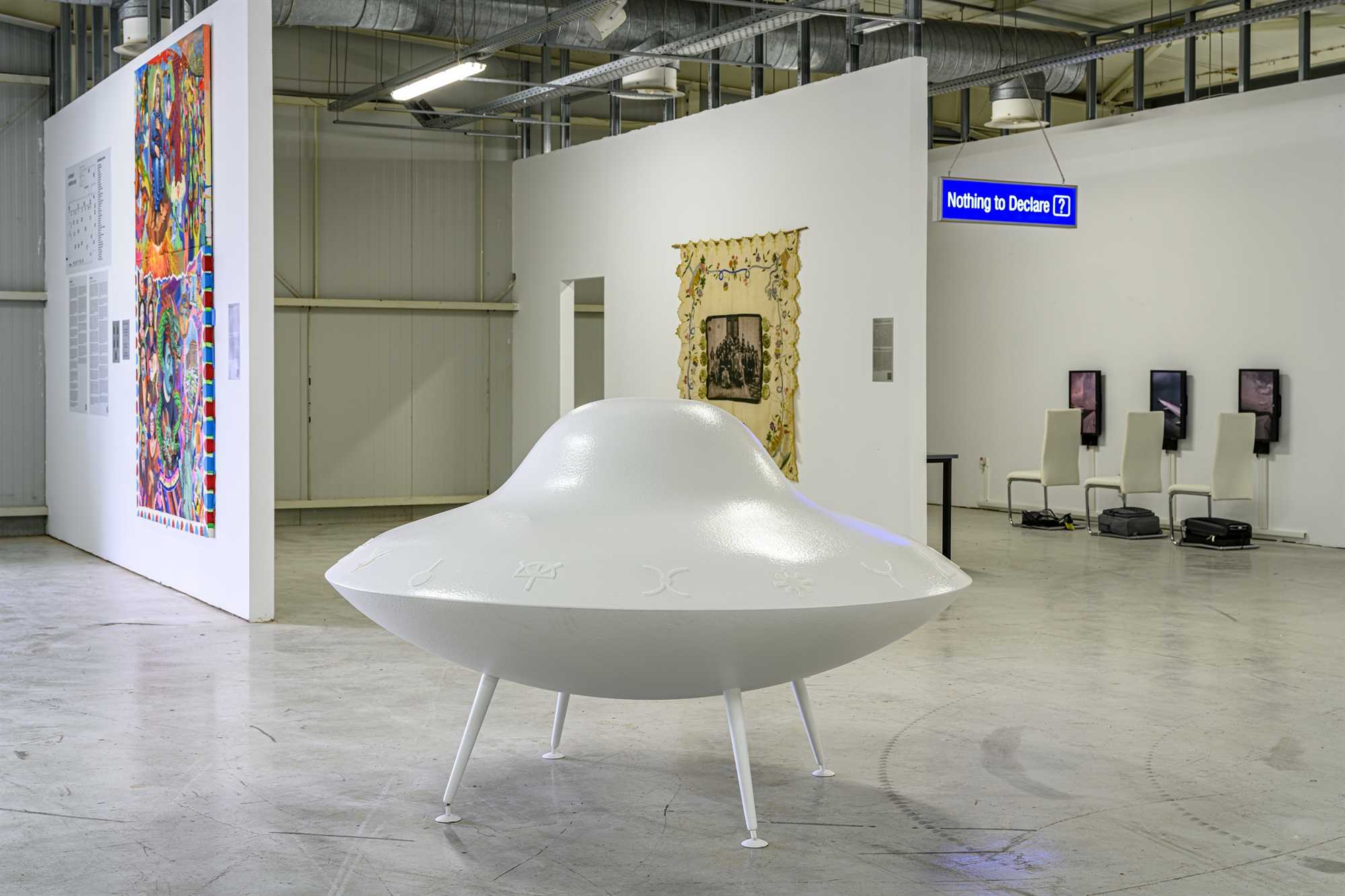 Τα δύο έργα είναι μέρος της έκθεσης «All aboard», που πραγματοποιείται στο Express facility του αεροδρομίου, ένα χώρο που δημιουργήθηκε μόνο για να εξυπηρετήσει τους φιλάθλους του Champions League το 2004 και τους επισκέπτες των Ολυμπιακών Αγώνων. Εδώ ο επιμελητής Κώστας Πράπογλου, σε συνεργασία με τον αστικό μη κερδοσκοπικό οργανισμό Artefact Athens, συγκεντρώνει 40 έργα Ελλήνων και ξένων καλλιτεχνών, δημιουργώντας ένα σταυροδρόμι τέχνης και εμπειρίας. Από σήμερα, το κοινό μπορεί να «επιβιβαστεί» σε αυτό το διαφορετικό ταξίδι.