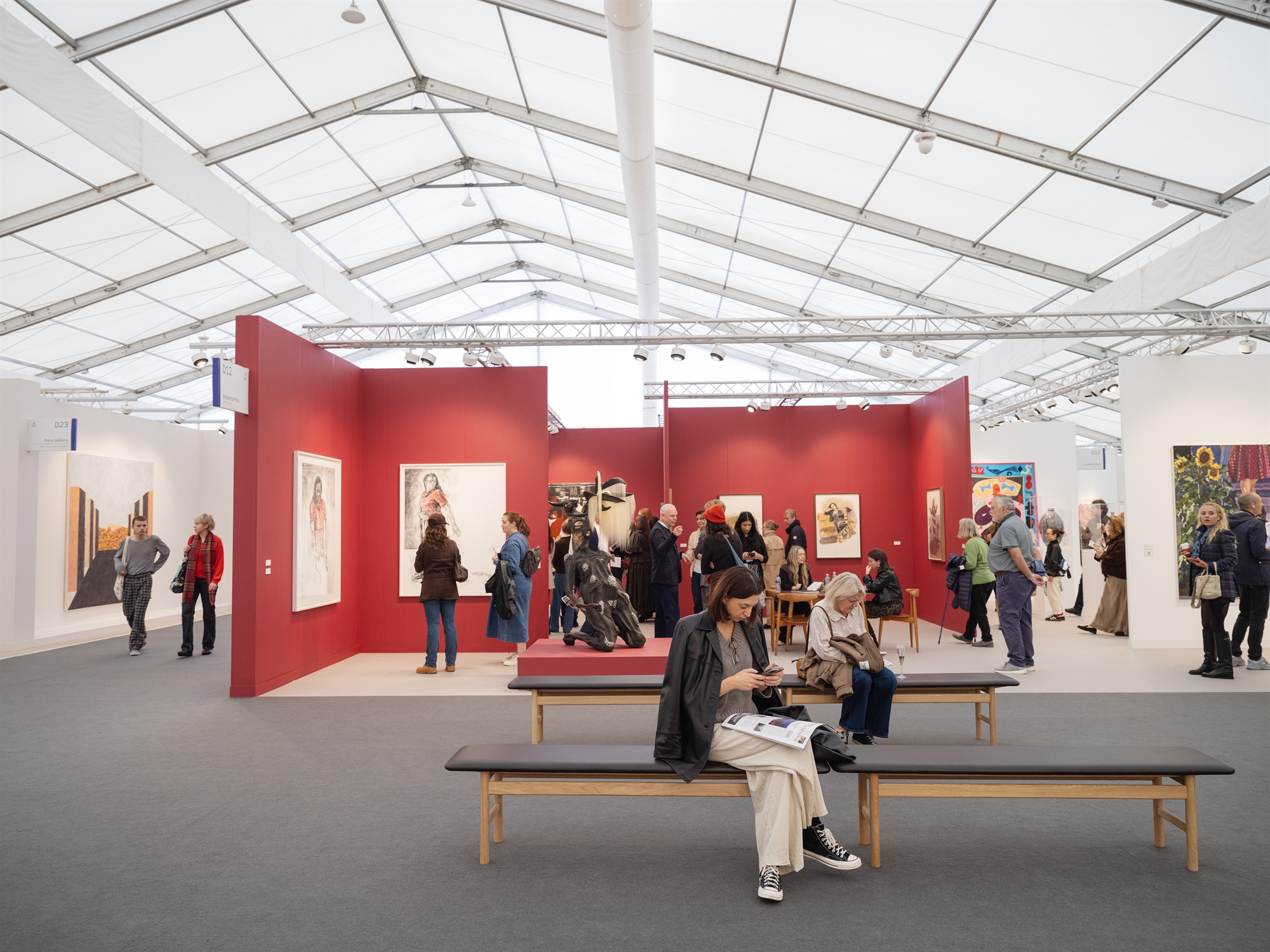 Οι πιστοί –συλλέκτες, επιμελητές, influencers και καλλιτέχνες–συνωστίζονται στους διαδρόμους του Regent’s Park για να δουν, αλλά και για να τους δουν. Με 280 γκαλερί από 45 χώρες, η Frieze δεν είναι απλώς έκθεση· είναι μια παγκόσμια εμπειρική μελέτη που ακολουθεί τις παρούσες οικονομικές και γεωπολιτικές εξελίξεις. Ωστόσο, και μολονότι η αγορά της «Βlue chip art» αναστενάζει διεθνώς, εδώ οι εμπορικές συμφωνίες προχωρούν και το Λονδίνο παραμένει το κέντρο της τέχνης που πουλάει.