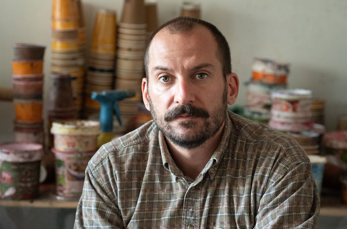 Η δισδιάστατη προοπτική στα έργα του υπηρετείται από την ξεχωριστή τεχνική του. Τα έργα του είναι χρωματιστός χαρτοπολτός. «Μου επιτρέπει μια αφηγηματική ελευθερία και έναν πλαστικό περιορισμό, κάτι που με βοηθά να ανασυστήσω την εικόνα και να εκφράσω άμεσα τη σκέψη μου», εξηγεί ο ίδιος. «Δεν πρόκειται για χαρτί που επιχρωματίζεται ώστε να σχηματιστεί η εικόνα – ο ίδιος ο χαρτοπολτός, τη στιγμή που απλώνεται στη σήτα, δημιουργεί και την εικόνα. Φτιάχνω τον χαρτοπολτό από χρωματιστά χαρτόνια, δημιουργώντας μία χρωματική παλέτα. Το υλικό που προκύπτει είναι μία υγρή μάζα χαρτιού, την οποία απλώνω σε τελάρα με σήτα, ώστε να φύγει η υγρασία και να μείνει το χαρτί». Ο επιμελητής της έκθεσης, Γιώργος Μυλωνάς, επισημαίνει πως «ο χαρτοπολτός, με την αδρή υφή του, αντικαθιστά τον μετωπικό χειρισμό του Κόντογλου με μια υλικότητα εξίσου αποκαλυπτική».