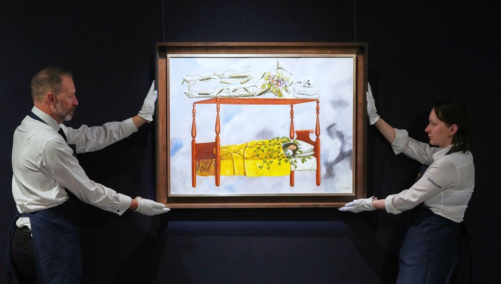‘El sueño (La cama)’ by Frida Kahlo soars to $54.7 million, becoming the most valuable work by a woman artist ever sold at auction.
