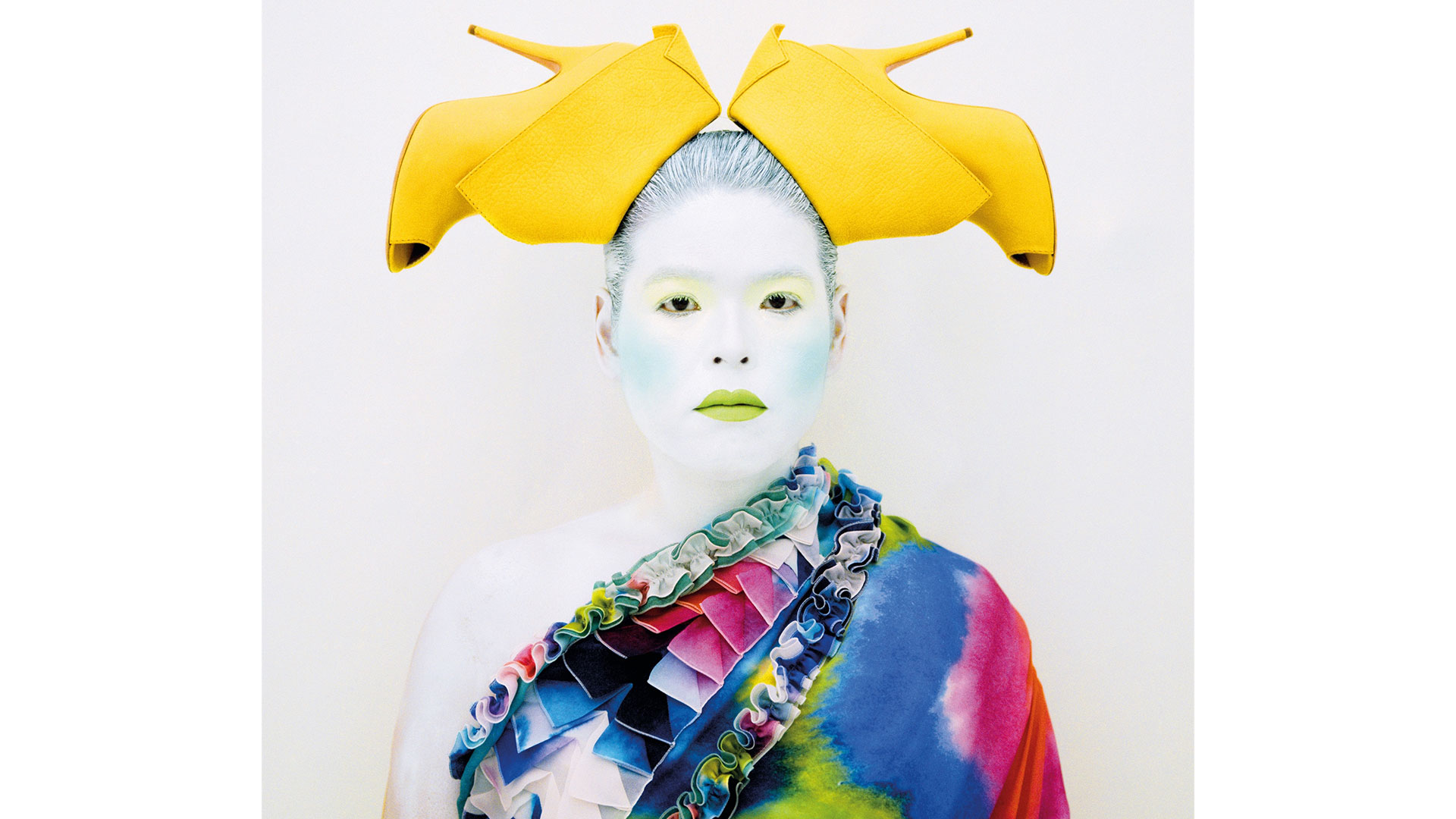 Η Κιμίκο Γιοσίντα περίμενε τους επισκέπτες της έκθεσής της «Μυθολογίες» –μια έμμεση αναφορά στις «Μυθολογίες» του Ρολάν Μπαρτ– φορώντας την κλασική πλέον ιαπωνική εκδοχή της σύγχρονης αστικής αμφίεσης που καθιέρωσε ο σχεδιαστής Γιότζι Γιαμαμότο: φαρδύ μαύρο παντελόνι, ασπρόμαυρη πλισέ πουκαμίσα, ενώ η γκαλερί Kourd είχε βουτήξει στο χρώμα. Μια σειρά έργων στα οποία το σώμα, το χρώμα και ο μύθος δεν διαχωρίζονται μέσα σε ένα ενιαίο τοπίο μεταμορφώσεων.