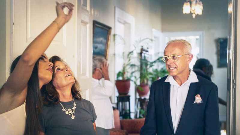 Διαθέτει την πιο ωραία οροφογραφία στην Ερμούπολη, καθώς θεοί του Ολύμπου και αγωνιστές του 1821 συνυπάρχουν αρμονικά. Ο Γεώργιος Καραϊσκάκης, ο Ερμής, ο Ρήγας Φεραίος και όλες οι άλλες μορφές του ταβανιού ξαναζωντάνεψαν κυριολεκτικά χάρις σε μια εφαρμογή επαυξημένης πραγματικότητας για τάμπλετ που σχεδιάστηκε από το Πανεπιστήμιο Αιγαίου και το Τμήμα Μηχανικών Σχεδίασης Προϊόντων και Συστημάτων που έχει έδρα τη νεοκλασική πόλη. Γόνοι Ψαριανών πλοιοκτητών που ήρθαν στην Ερμούπολη το 1822, οι Κοήδες πάντα χαρακτηρίζονταν από το δραστήριο πνεύμα τους. Ετσι και ο Σταύρος Κοής, ξεκίνησε εδώ και χρόνια την προσπάθεια να αναδείξει την ομορφιά που έμαθε να αντικρίζει από παιδί στην οροφή του σπιτιού του. Ο ίδιος θυμάται τις φιγούρες αυτές φωτισμένες μόνο με κεριά όταν δεν είχε ηλεκτρικό το βράδυ, με συνοδεία πιάνου και τρομερά εδέσματα που έφτιαχναν Μικρασιάτισσες μαγείρισσες φίλες της μητέρας του. Μια ωραία ιδέα για την οροφογραφία τού έδωσε η Γαλλίδα σταρ Κατρίν Ντενέβ, που είχε επισκεφθεί το κατάστημά του: να φτιάξει μεταξωτά φουλάρια με την παράσταση αυτή. Υστερα ο Κοής έφτιαξε σκελετούς γυαλιών ηλίου (και μάλιστα η στήλη είχε αποτυπώσει την αείμνηστη μητέρα του, Μυρσίνη, να τα κρατά με καμάρι), κοσμήματα και άλλα προϊόντα. Τώρα ήρθε η ώρα των φοιτητών του πανεπιστημίου να πάρουν τη σκυτάλη, μιας και έλαβαν μέρος σε διαγωνισμό σχεδίασης γυαλιών. Ολες οι συμμετοχές, τυπωμένες με 3D εκτυπωτή, παρουσιάστηκαν στη σάλα του αρχοντικού υπό το μάτι θεών και ηρώων που καμάρωναν τους νέους, συνδέοντας το αρχοντικό καταπίστευμα της Ερμούπολης με την επιχειρηματικότητα, με κρίκο τον αεικίνητο διδάσκοντα στο πανεπιστήμιο Παύλο Χατζηγρηγορίου.