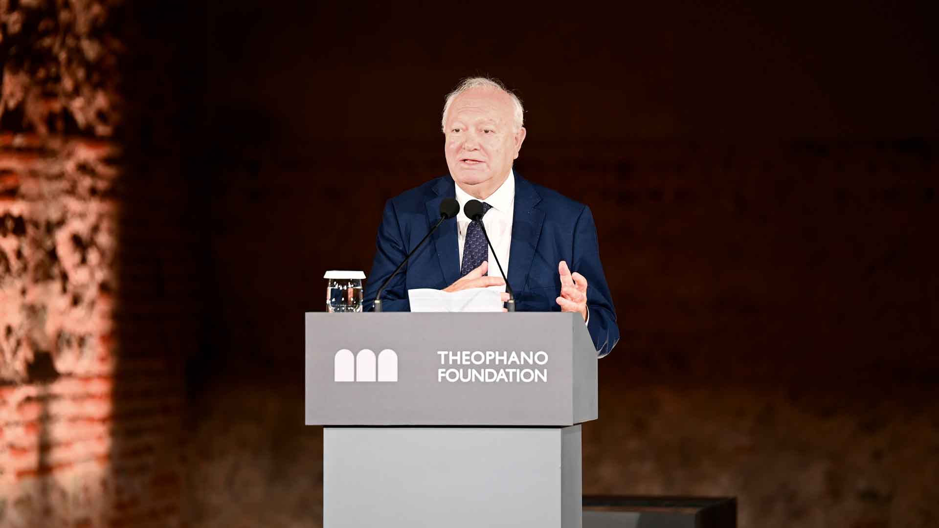 Ο Σταύρος Ανδρεάδης, πρόεδρος της διοικούσας επιτροπής του Ιδρύματος Θεοφανώ, τόνισε από το βήμα πως κανείς δεν θα φανταζόταν, τέσσερα χρόνια πριν, πόσο επιτακτικός και καίριος θα ήταν ο σκοπός των βραβείων που αντιμάχονται τη μισαλλοδοξία και πρεσβεύουν τη συνύπαρξη, τώρα που μαίνεται η μάχη στη Μέση Ανατολή και στην Ουκρανία. Ο Μαργαρίτης Σχοινάς, ο Θεσσαλονικιός αντιπρόεδρος της Ευρωπαϊκής Επιτροπής, υπογράμμισε ότι ο ΟΗΕ δίνει τη μάχη για τη διακρατική πολυμέρεια, σε συνθήκες γεμάτες προκλήσεις. Στο βιντεοσκοπημένο μήνυμά του, ο βραβευθείς Γκουτέρες τόνισε με έμφαση: «Ο μόνος δρόμος που πάει μπροστά, είναι αυτός στον οποίο βαδίζουμε μαζί. Πλούσιοι στη διαφορετικότητα, ίσοι στην αξιοπρέπεια και στα δικαιώματα, ενωμένοι στην αλληλεγγύη. Ενωμένοι μπορούμε να χτίσουμε μια συμμαχία ειρήνης».