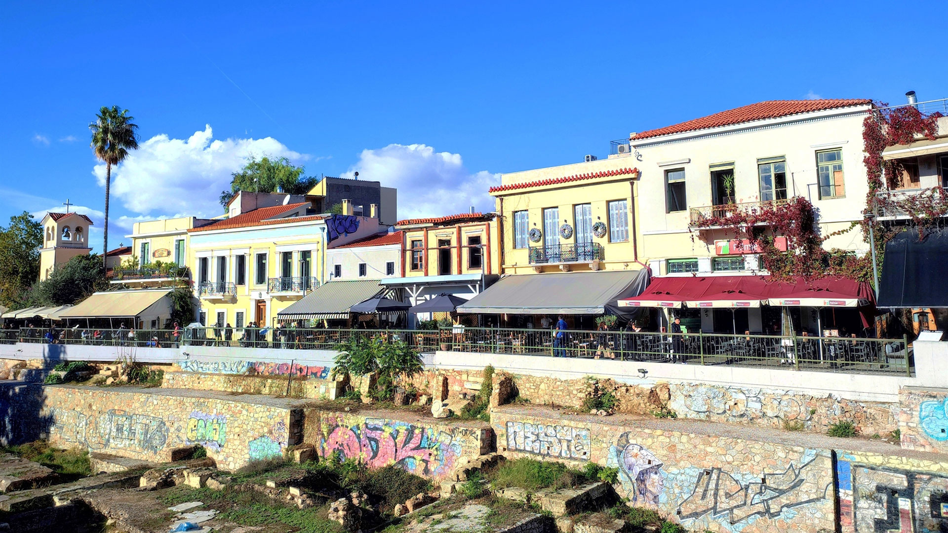 Θα μπορούσε να είναι ένα από τα ωραιότερα σημεία θέασης του Ιερού Βράχου, ένα μοναδικό μπελβεντέρε με το ανεπανάληπτο πανόραμα της κλασικής Αθήνας να ξεδιπλώνεται μπροστά στα μάτια σου· ξεκινώντας από τη Στοά του Αττάλου στα ανατολικά, τα σπίτια της Πλάκας και την Ακρόπολη ακριβώς απέναντι, το Αστεροσκοπείο λουσμένο στα χρώματα του ηλιοβασιλέματος και τον ναό του Ηφαίστου στο δυτικό άκρο. Μπορεί να μη διαθέτει το φάρδος και την αστική μεγαλοπρέπεια της Διονυσίου Αρεοπαγίτου ή την οπτική της εγγύτητα με τον Παρθενώνα, αλλά έχει ένα σχεδόν αδιατάρακτο μέτωπο ωραίων νεοκλασικών σπιτιών που θα μπορούσαν να φιλοξενούν μικρά εστιατόρια, μπιστρό ή wine bars με χαμηλή μουσική, έτσι ώστε να αφομοιώνεται και να μεταβολίζεται το ανυπέρβλητο θέαμα.