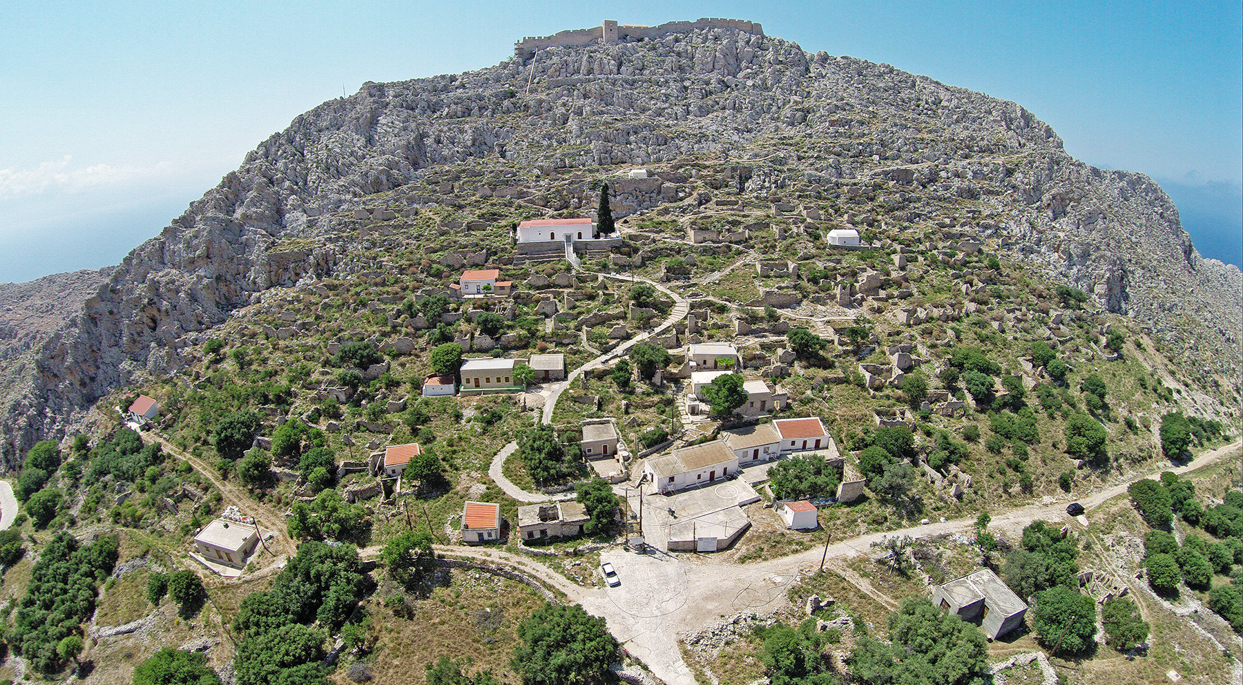 Ηταν από εκείνες τις εικόνες που θαρρείς σου ιαίνουν την ψυχή, επειδή σου δίνουν λόγο και νόημα να ζεις σε αυτήν τη χώρα. Παραμονές Δεκαπενταύγουστου στη Χάλκη, είχαμε ανεβεί το μονοπάτι που οδηγεί από τα ριζά του Παλιού Χωριού στο κάστρο που έχτισαν οι Ιωαννίτες Ιππότες της Ρόδου τον 15ο αιώνα. Σουρούπωνε και ο ήλιος γλύκαινε το απόλυτα βραχώδες και σκληρό τοπίο. Από τις επάλξεις βλέπαμε στο βάθος του ορίζοντα την ακατοίκητη Αλιμιά και τη Ρόδο. Το φεγγάρι είχε αρχίσει να αχνοφαίνεται και έτσι πήραμε γρήγορα τον δρόμο της επιστροφής, μη μας πιάσει το σκοτάδι. Κατεβαίνοντας αυτόν τον λόφο που κατοικήθηκε από τον προϊστορία μέχρι τα μέσα του 20ού αιώνα (σήμερα όλοι οι Χαλκίτες ζουν στον κουκλίστικο οικισμό του λιμανιού), συναντήσαμε ολοζώντανο το παρελθόν του νησιού: αρχαία πηγάδια, αναλημματικούς τοίχους από τον 4ο π.Χ. αιώνα, υπόγειες λαξευτές δεξαμενές, πετρόχτιστα ερειπωμένα μεσαιωνικά σπίτια, μικρά μεταβυζαντινά εκκλησάκια, δύο ελληνιστικούς βωμούς – θρόνους του Δία και της Εκάτης. Ολα φροντισμένα από την Αρχαιολογική Υπηρεσία, που έκανε σωστή στερέωση και ανάδειξη.