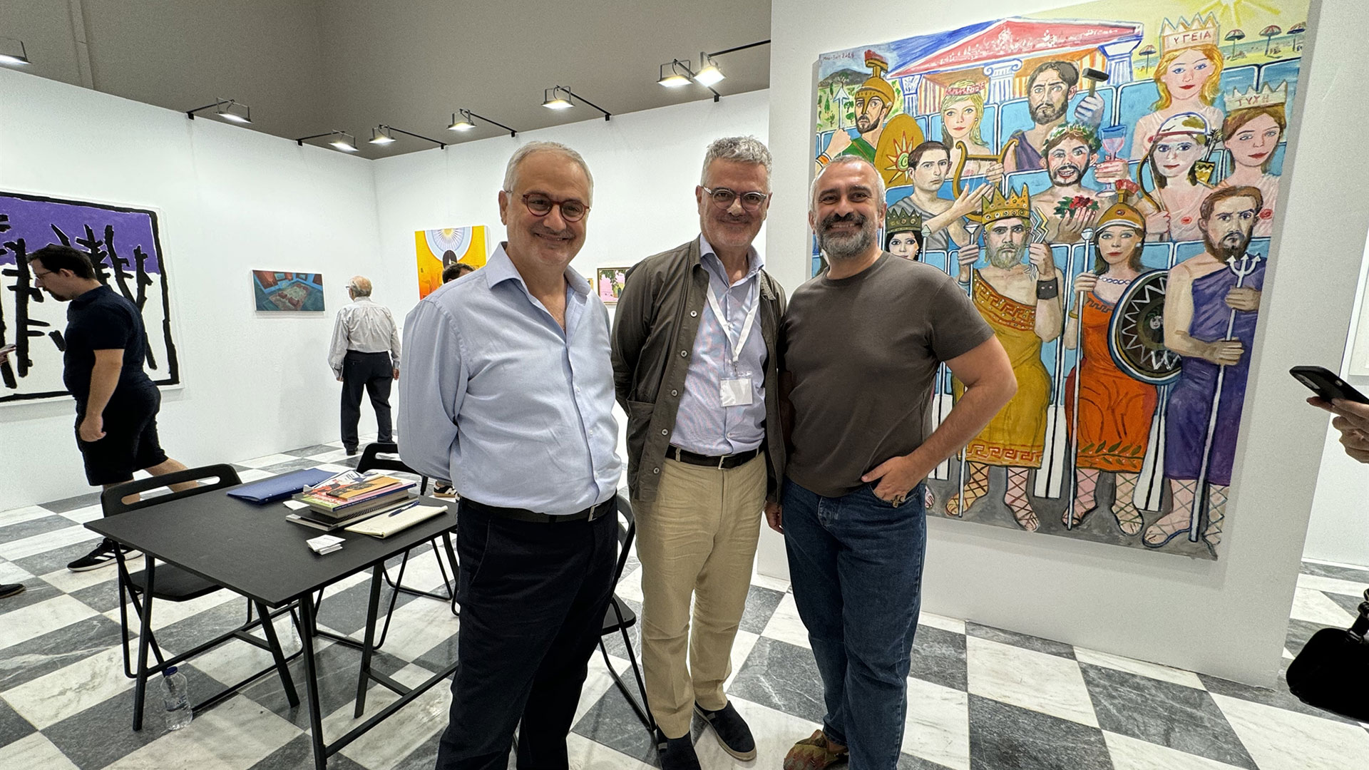 Ο Γιάννης Καλλιγάς από τη «Σκουφά» παρουσίαζε με χαρά τα έργα στον κόσμο που ρωτούσε παρέα με τον Ηλία Παπαηλιάκη, ενώ η Τατιάνα Σπινάρη είχε το έργο με το οποίο όλοι ήθελαν να φωτογραφηθούν, ένα τεράστιο κόκκινο γλυπτό του Γιώργου Λάππα. Ενθαρρυντικοί για την προσπάθεια αλλά και πεπεισμένοι ότι πρέπει να γίνει ακόμα μεγαλύτερη η εξωστρέφεια ήταν ο Ρουπέν και ο Αρσέν Καλφαγιάν, που ξεναγούσαν τον καλλιτεχνικό διευθυντή του Μουσείου Μπενάκη Γιώργη Μαγγίνη.