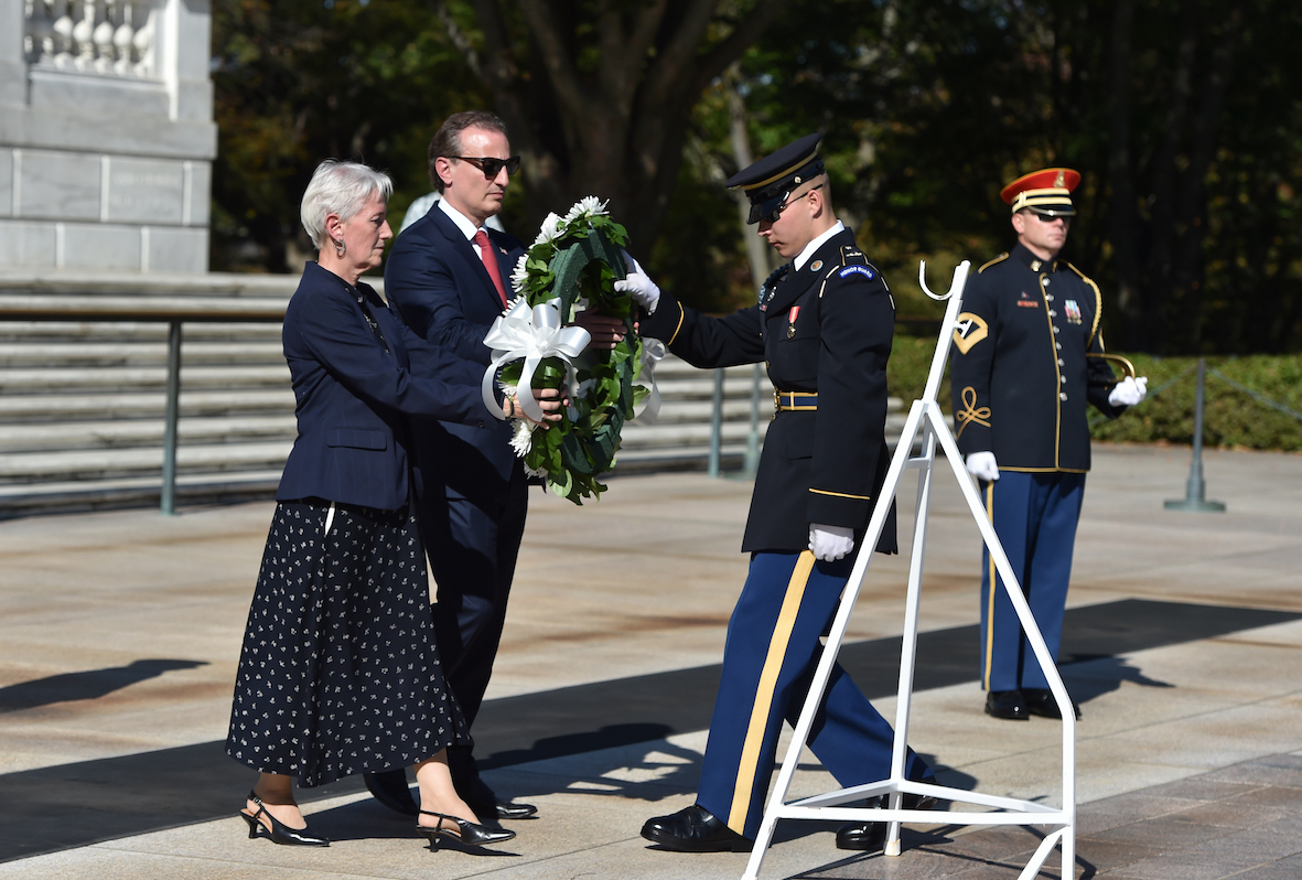 Η σημαντικότερη από αυτές πραγματοποιήθηκε παρουσία της Αικατερίνης Νασίκα, της πρέσβειρας της Ελλάδας στην Ουάσιγκτον, καθώς και επιφανών εκπροσώπων της ελληνοαμερικανικής κοινότητας. Στις 31 Οκτωβρίου, σε μια ιδιαίτερα συγκινητική τελετή, η πρέσβειρά μας με τον Αντριου Πόππας, τον ομογενή στρατηγό και διοικητή του μεγαλύτερου σώματος του Στρατού των ΗΠΑ (US Army Forces Command) και τον εκτελεστικό πρόεδρο του ομίλου Libra, Γιώργο Λογοθέτη, κατέθεσαν στεφάνι στο μνημείο του Αγνώστου Στρατιώτου, στο στρατιωτικό νεκροταφείο Αρλινγκτον στη Βιρτζίνια, ώστε να τιμήσουν τις θυσίες των Ελλήνων στον Β΄ Παγκόσμιο Πόλεμο. Κινητήριος μοχλός της εκδήλωσης είναι ο μη κερδοσκοπικός οργανισμός Washington Oxi Day Foundation, με τον εκτελεστικό διευθυντή του οργανισμού, Μάικ Μανάτο, να δίνει επίσης το «παρών».