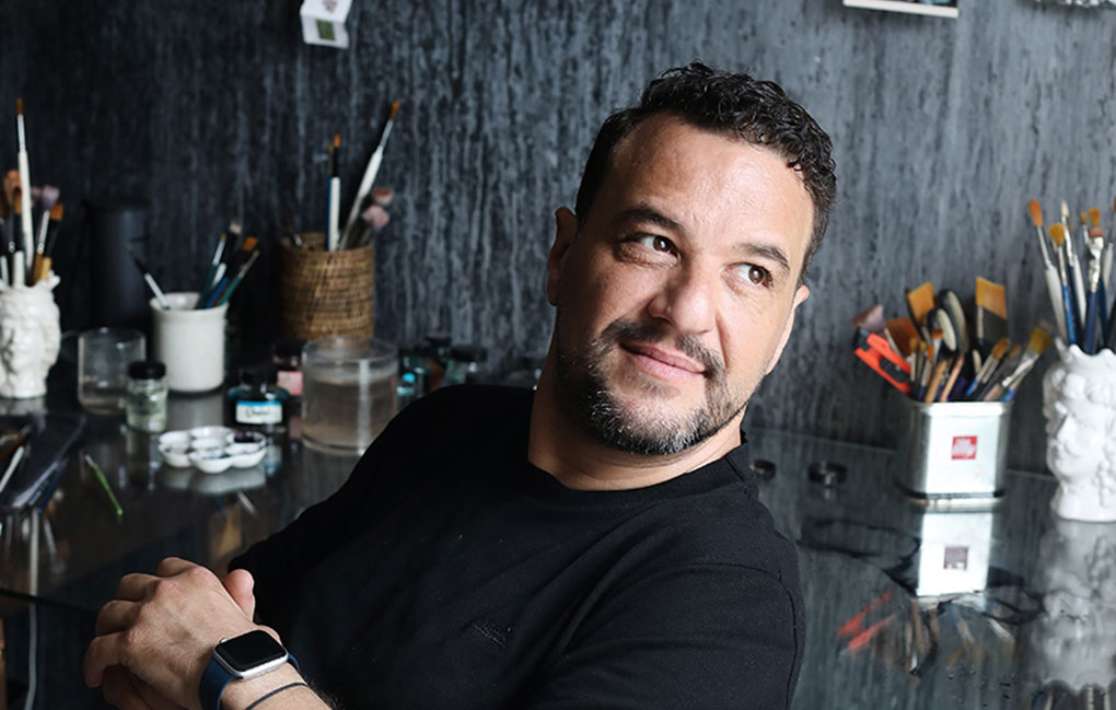 Ανθρωπος ανήσυχος και πολυτάλαντος, που καταπιάνεται από τη θεατρική σκηνογραφία και τη γραφιστική έως το στήσιμο εκθέσεων μαζί με τη Βιβή Γερολυμάτου στη Μικρή Αρκτο (έχουμε θαυμάσει πολλά από τα αφιερώματα που έχει φροντίσει το δίδυμο αυτό στο Μουσείο Γουλανδρή στο Παγκράτι και την Ανδρο αλλά και στη Γεννάδειο), ο πενηντάρης καλλιτέχνης έχει ακονίσει τη ματιά του μέσα από πολλαπλές σκοπιές. Η ζωγραφική γίνεται ένα προνομιακό πεδίο έκφρασης, διότι εκεί εκβάλλουν όλα τα βιώματα, οι γνώσεις και οι αισθήσεις του. Παρονομαστής όλων αυτών η τεράστια αγάπη του για τη λογοτεχνία, αλλά και τον κινηματογράφο, που λειτουργούν ως «τροφοί». Ετσι, οι αστικές αντανακλάσεις που ζωγραφίζει με τη μελάνη του εμπλουτίζονται με έργα που αντλούν έμπνευση από κείμενα και εικόνες των Λουίτζι Πιραντέλο, Γιώργου Σεφέρη, Κικής Δημουλά, Αττίκ Ιλχάν, Μουραθάν Μουνγκάν, Αντρέι Ταρκόφσκι, Παόλο και Βιτόριο Ταβιάνι.