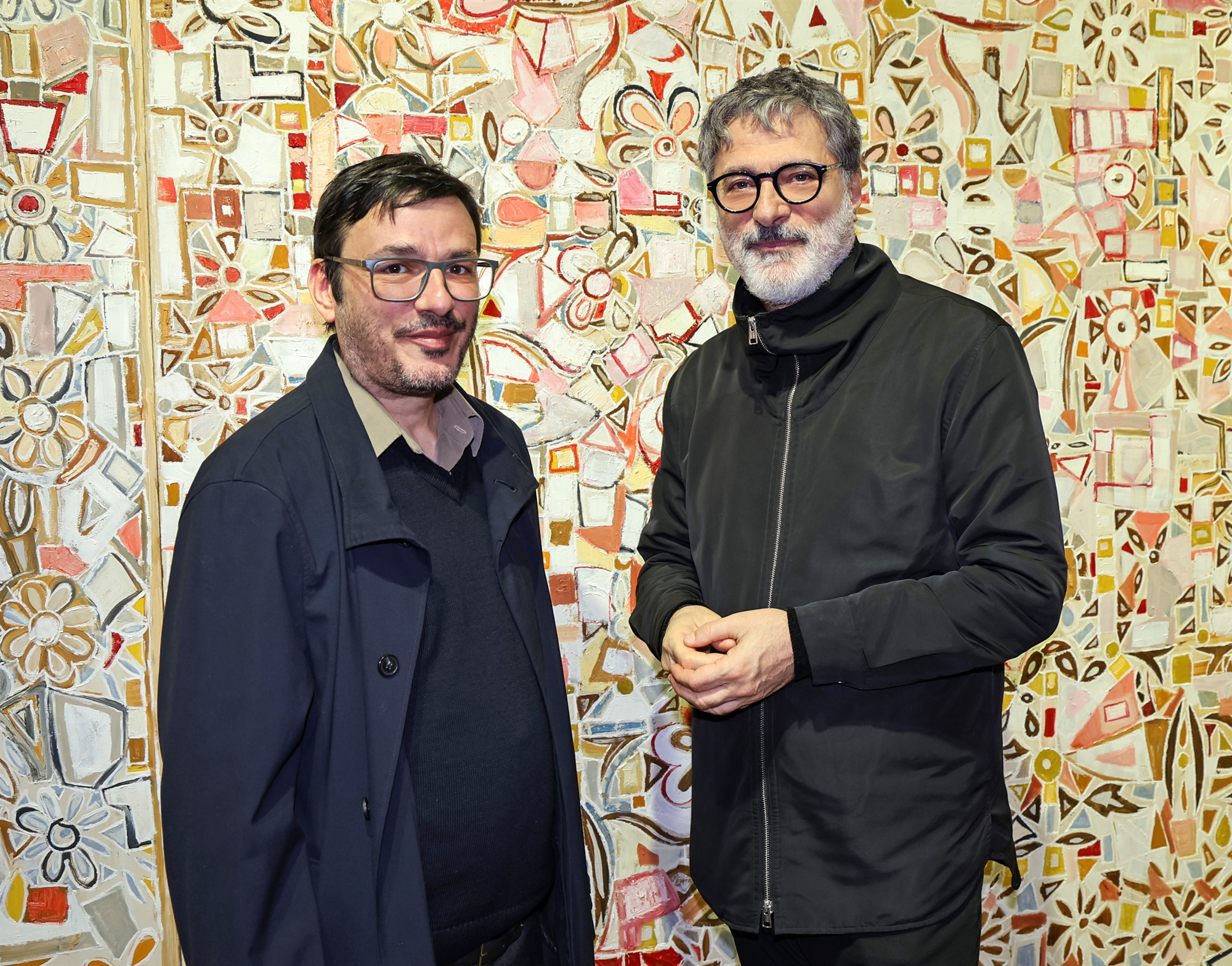 Από το 2023 η ΕΒΕ προτείνει την περίοδο γύρω από το Πάσχα ένα εικαστικό αφιέρωμα με έργα που συνομιλούν με το ιερό ή διαπνέονται από αυτό. Η αρχή έγινε με τον Γιάννη Κονταράτο, «Επιτάφιος θρήνος – Εννιά παραλλαγές», που είχε συγκινήσει ιδιαίτερα χάρη στη λιτότητα της φόρμας. Το 2024 είδαμε τα υπέροχα έργα του Κώστα Παπατριανταφυλλόπουλου, που αποτύπωνε τον πολύμοχθο αγώνα του να ιστορήσει τον ναό του Αγίου Βασιλείου στα Βραχναίικα της Πάτρας. Τώρα ήρθε η σειρά του Κυραρίνη, ενός καλλιτέχνη που ανατράφηκε μέσα στην ιερή αύρα της Τήνου, με πατέρα μαρμαρογλύπτη. Παρουσιάζει 61 έργα τόσο μεγάλα όσο και λιλιπούτεια, τοποθετώντας τα τελευταία μαζεμένα σε έναν τοίχο σαν μικρό εικονοστάσι.