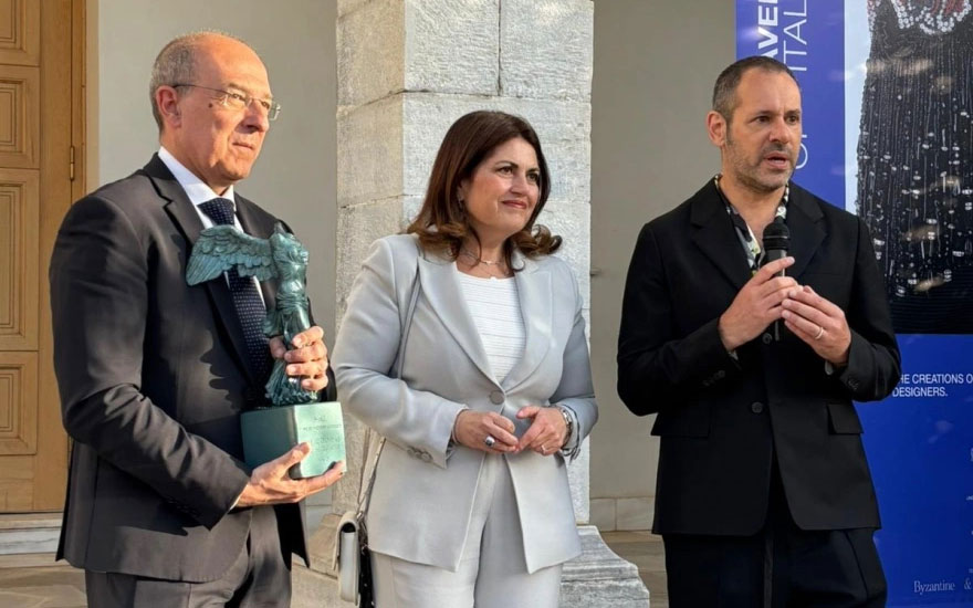 Την κορδέλα του αφιερώματος έκοψε την περασμένη εβδομάδα ο πρέσβης της Ιταλίας στην Αθήνα, Πάολο Κουκούλι. Εχει τίτλο «Byzantium – Ravenna. Icons of Italian Fashion» και διοργανώθηκε από την πρεσβεία της Ιταλίας και το ιστορικό Ινστιτούτο Μόδας Polimoda σε συνεργασία με τον διεθνώς αναγνωρισμένο συλλέκτη μόδας Αντζελο Καρόλι (A.N.G.E.L.O. Archive), στο πλαίσιο του αφιερώματος «Ημέρες ιταλικής μόδας στον κόσμο». Ο Ιταλός διπλωμάτης έκανε βέβαια αναφορές στους ιστορικούς και πολιτιστικούς δεσμούς των δύο χωρών, αλλά και εξήρε τη συμβολή του Μασιμιλιάνο Τζορνέτι, διευθυντή του Polimoda και δημιουργού μόδας, ο οποίος οραματίστηκε και επιμελήθηκε την ομαδική. «Η έκθεση λειτουργεί ως γέφυρα πολιτισμού που συνδέει την Αδριατική με το Αιγαίο», υπογράμμισε ο πρέσβης, συμπληρώνοντας ότι για την πατρίδα του η μόδα είναι ένας τεράστιος μοχλός οικονομικής ανάπτυξης, με βαρυσήμαντο ετήσιο κύκλο εργασιών αλλά και εκατοντάδες χιλιάδες εταιρείες και εργαζομένους.