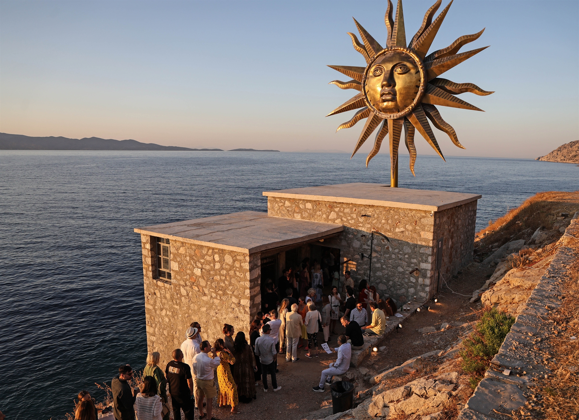 Ο Δάκης Ιωάννου με τον Τζεφ Κουνς κατέφτασαν και αυτοί μαζί με τους πολλούς προσκεκλημένους του συλλέκτη που ήρθαν ειδικά από το εξωτερικό. Το ευτυχές είναι ότι ο θεσμός έχει αποκτήσει πλέον τη δική του δυναμική και συγκεντρώνει κάθε χρόνο φανατικούς σ’ ένα ραντεβού που τηρείται ευλαβικά, διότι ταυτίζεται σχεδόν με την έναρξη του θέρους. Τα τελευταία χρόνια τα εγκαίνια έχουν μετατραπεί σε μια πάνδημη γιορτή με φαγητό και μουσική που τους φέρνει όλους πιο κοντά: από τον Νικόλα Νιάρχο που περιδιάβαινε στα σοκάκια της Υδρας, μέχρι ερωτευμένα ζευγάρια που προσπαθούσαν να καταλάβουν πού πάνε ξαφνικά όλοι αυτοί οι άνθρωποι. Φεύγοντας από την Υδρα είπα μέσα μου ένα τελευταίο γεια στον περιστρεφόμενο ήλιο του Τζεφ Κουνς, τη μόνη εγκατάσταση από όσες παρουσιάστηκαν στα Σφαγεία που έμεινε για πάντα στο νησί έπειτα από δωρεά του ΔΕΣΤΕ. Θυμίζει, χειμώνα – καλοκαίρι, σε όσους φτάνουν ή αποχωρούν πως η Ελλάδα μπορεί να γίνει προορισμός σύγχρονης τέχνης.