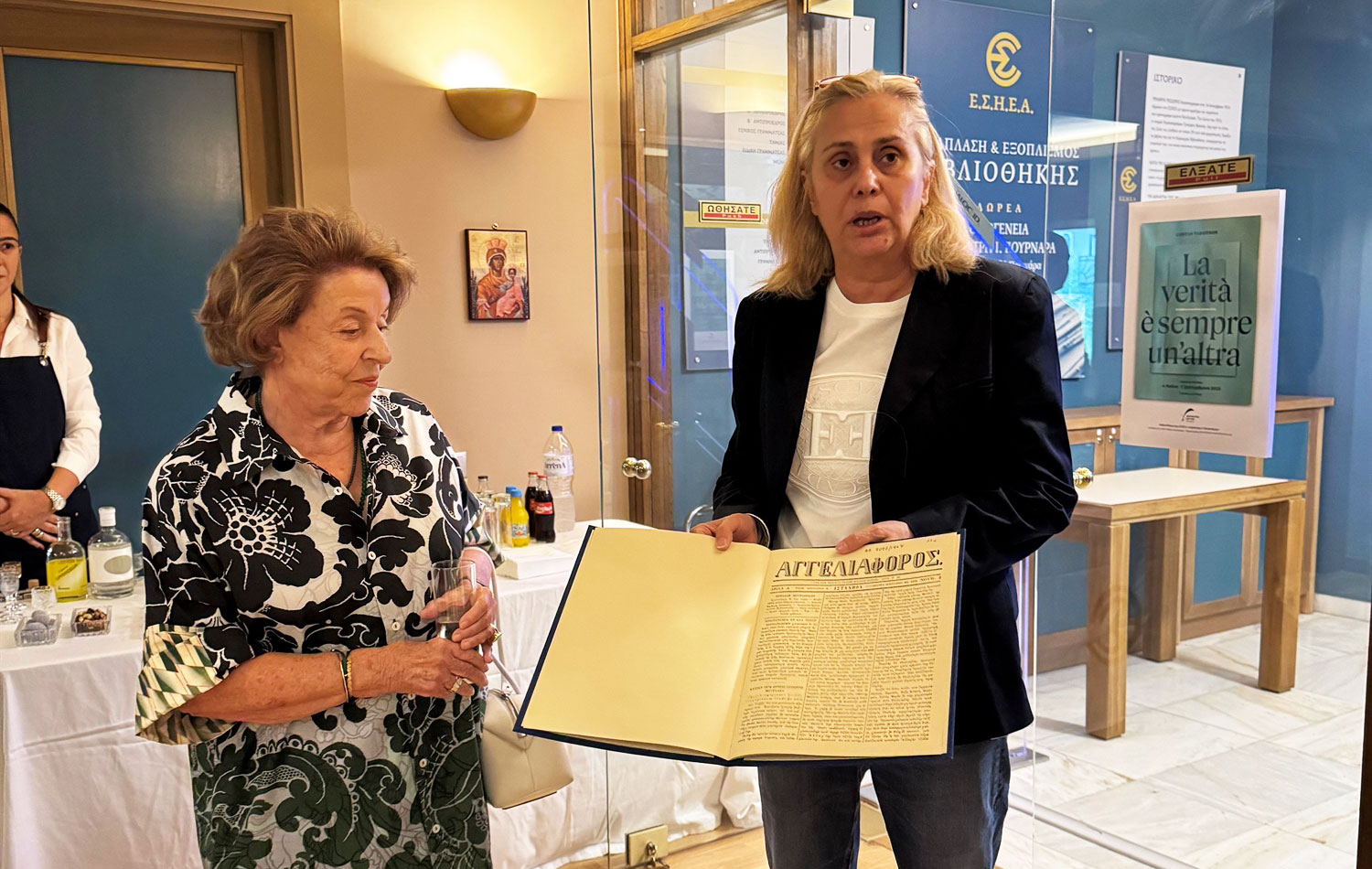 «La verità è sempre un’ altra. Η αλήθεια είναι πάντα κάποια άλλη». Τι ωραίο και αλληγορικό τίτλο επέλεξε ο γλύπτης Κώστας Βαρώτσος για τη σημαντική έκθεσή του που παρουσίασε στη Βιβλιοθήκη Δημήτρη Ι. Πουρνάρα στην ΕΣΗΕΑ. Οι καλλιτέχνες ψυχανεμίζονται πρώτοι το zeitgeist και εκείνος ξέρει ότι η μάχη που δίνει τώρα η δημοσιογραφία είναι να υπερασπιστεί την αντικειμενική πραγματικότητα, η οποία ήδη θολώνει και αλλοιώνεται από την αυταρχικότητα της σύγχρονης ηγεσίας όσο και από το παραμορφωτικό κάτοπτρο των αλγορίθμων στα μέσα κοινωνικής δικτύωσης. Προχθές Παρασκευή, στο finissage του εικαστικού αφιερώματος, το οποίο είχε εγκαινιαστεί στις 6 Μαΐου, πέρασαν το κατώφλι όσοι δεν είχαν προλάβει να το δουν, αλλά και πολλοί αγαπημένοι συνάδελφοι του πολιτιστικού ρεπορτάζ. Εκεί ήταν και η δραστήρια πρόεδρος της Ενωσης αλλά και του Μορφωτικού Ιδρύματος της ΕΣΗΕΑ, Μαρία Αντωνιάδου, η οποία στηρίζει αυτές τις δράσεις, αλλά και η Κατερίνα Λυμπεροπούλου, γραμματέας του Μορφωτικού, η οποία και μόχθησε για τη διοργάνωση αυτής της ατομικής.