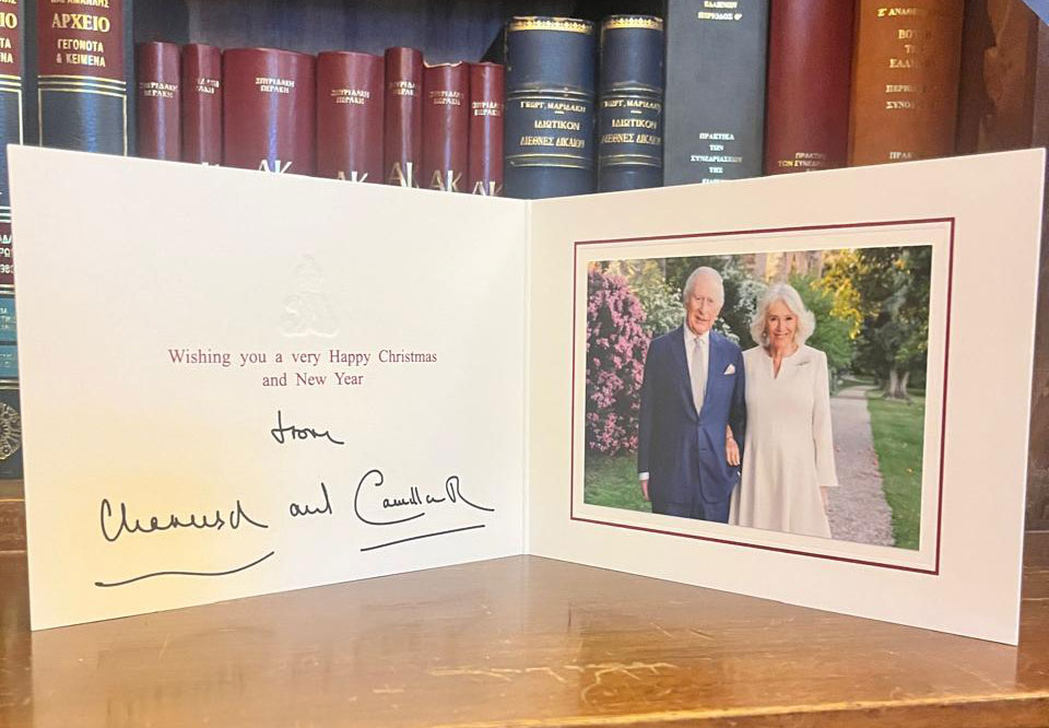 Μια ωραία κάρτα με ευχές από το βασιλικό ζεύγος του Ηνωμένου Βασιλείου έλαβε πριν από λίγες ημέρες ο Πρόεδρος της Δημοκρατίας Κωνσταντίνος Τασούλας, με την υπογραφή του βασιλιά Καρόλου και της βασίλισσας Καμίλα. Και οι δύο τρέφουν μεγάλη αγάπη για την Ελλάδα, πράγμα που φάνηκε στην επίσημη επίσκεψη που πραγματοποίησαν στην πατρίδα μας το 2021, για τον εορτασμό των 200 ετών από το 1821. Τότε μάλιστα είχαν πάει στην Προεδρική Φρουρά και είχαν λάβει ως δώρο έναν παιδικό ντουλαμά για τον εγγονό τους, αλλά και μια ωραία φωτογραφία του αείμνηστου πατέρα του Καρόλου ντυμένου με ευζωνική στολή στα παιδικά του χρόνια.