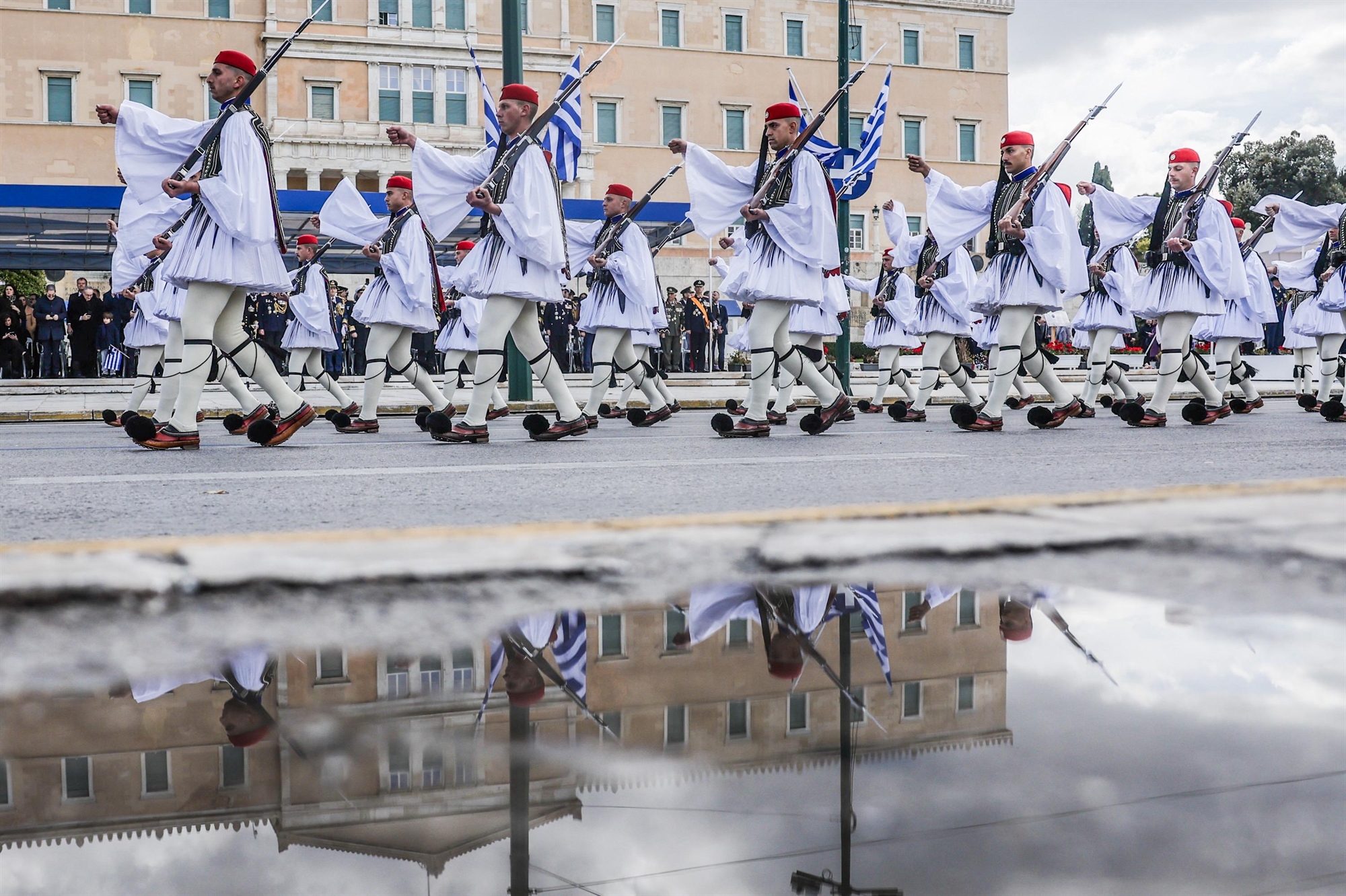 Κι όμως, τέσσερις ώρες μετά, στην πλατεία Συντάγματος και στους παρακείμενους δρόμους δεν έπεφτε καρφίτσα. Η μεγάλη στρατιωτική παρέλαση εξακολουθεί να ασκεί ιδιαίτερη γοητεία σε ένα καθόλου ευκαταφρόνητο τμήμα των Ελλήνων, που συχνά σπεύδουν οικογενειακώς να την παρακολουθήσουν συνδυάζοντας το κορυφαίο γεγονός της ημέρας με μια βόλτα στο κέντρο της Αθήνας. Και όπως συμβαίνει συνήθως, οι γενναίοι ανταμείβονται: οι πρώτες, «επιφυλακτικές» ηλιαχτίδες τρύπησαν τα πυκνά σύννεφα κατά τη διάρκεια της παρέλασης, ενώ ο καιρός είχε μαλακώσει σημαντικά με την ολοκλήρωσή της. Είχαν προηγηθεί η επίσημη έπαρση της σημαίας στον Ιερό Βράχο της Ακρόπολης στις 8 το πρωί και, δύο ώρες αργότερα, η δοξολογία στον Καθεδρικό (Μητροπολιτικό) Ιερό Ναό του Ευαγγελισμού της Θεοτόκου Αθηνών.
