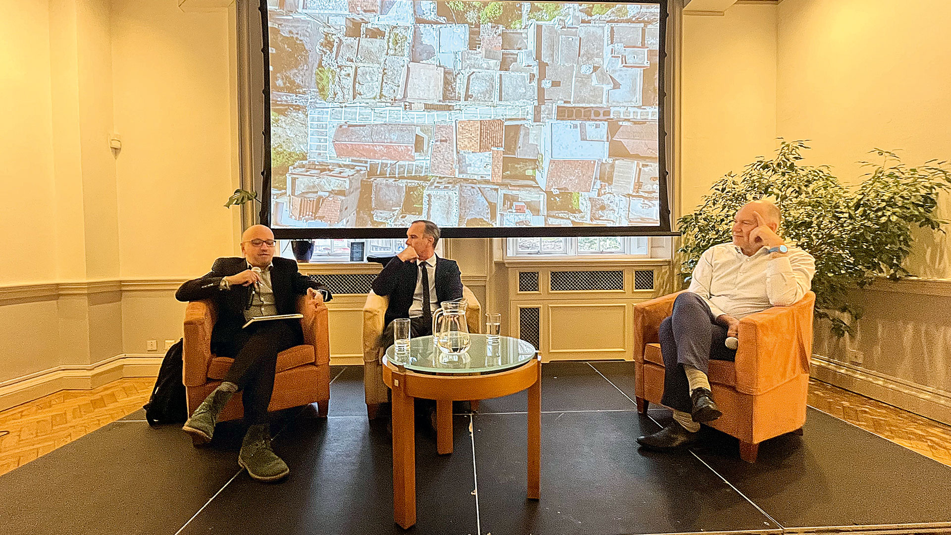 Μέλη της ελληνικής κοινότητας, νέοι επιστήμονες και επαγγελματίες – φυγάδες του brain drain και βεβαίως φίλοι της Χίου γέμισαν την αίθουσα για μια άκρως ενδιαφέρουσα συζήτηση μεταξύ του φωτογράφου και αρχιτέκτονα Γιώργη Γερόλυμπου, του καθηγητή διεθνούς πολιτικής και δημοσιογραφίας στο Πανεπιστήμιο του Bournemouth Ρωμανού Γεροδήμου και του καθηγητή στο Τμήμα Πολιτικής Επιστήμης και Διεθνών Σχέσεων του Πανεπιστημίου της Οξφόρδης Στάθη Καλύβα, που δεν περιορίστηκε βέβαια μόνο στο βιβλίο, αλλά ανοίχθηκε και σε γενικότερους και εύλογους προβληματισμούς για το μέλλον της περιφέρειας. Ωστόσο, η εκκίνηση έγινε από το φωτογραφικό οδοιπορικό που μας επανασυστήνει το ομώνυμο μεσαιωνικό χιώτικο χωριό και ένα εκτενές κείμενο για τον τόπο του αρχιτέκτονα και πρώην δημάρχου Χίου Μανώλη Βουρνού.