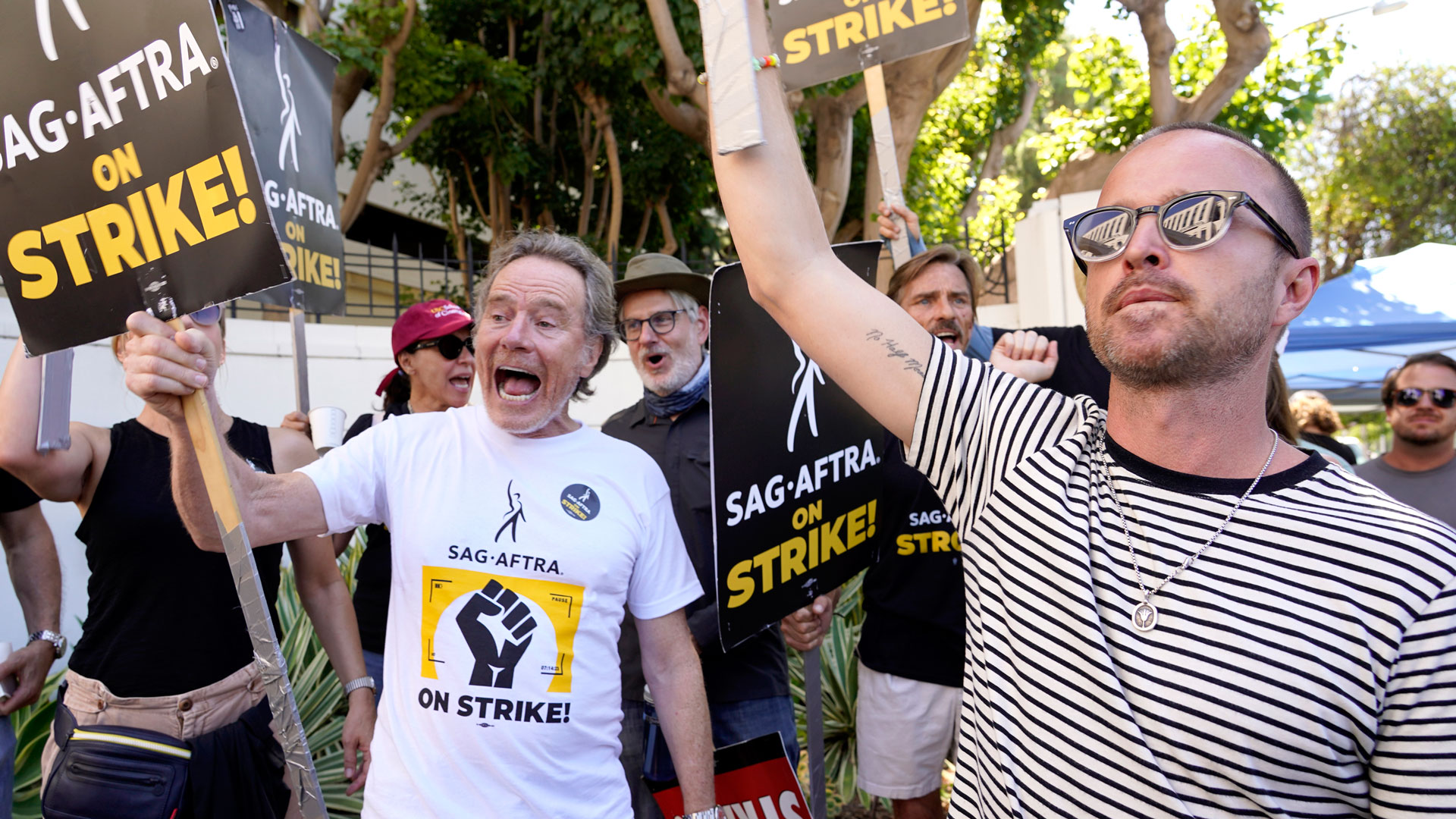 Οι Μπράιαν Κράνστον και Ααρον Πολ, οι τηλεοπτικοί Γουόλτερ Γουάιτ και Τζέσι Πίνκμαν όπως τους γνωρίσαμε στη δημοφιλή σειρά του δικτύου AMC «Breaking Bad», επανενώθηκαν πρόσφατα. Μαζί με τους υπόλοιπους ηθοποιούς της σειράς, κάλεσαν τα στελέχη των στούντιο του Χόλιγουντ να συνεχίσουν τις διαπραγματεύσεις με τους απεργούς ηθοποιούς.