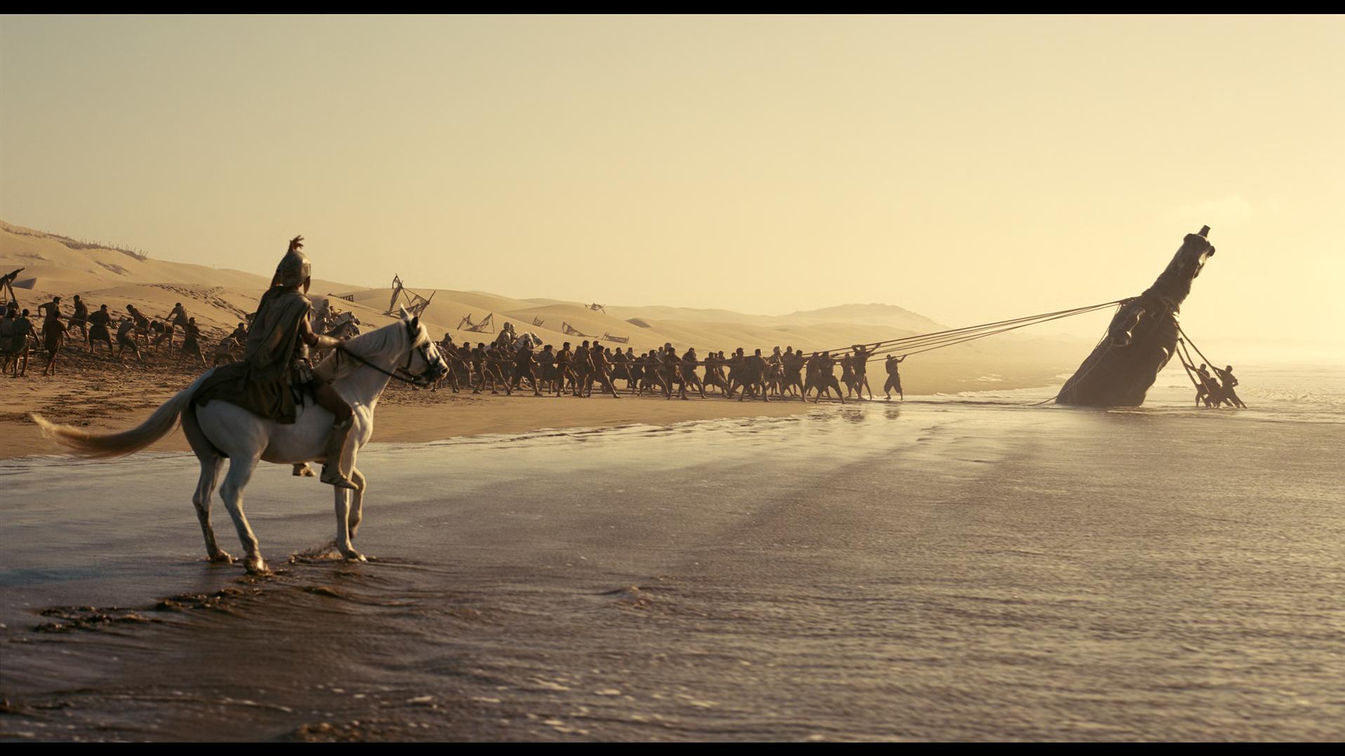 Το τρέιλερ περιελάμβανε επίσης μια σκηνή όπου ο Οδυσσέας παρακινεί τους στρατιώτες του να κωπηλατήσουν μέσα στην καταιγίδα, πριν εκείνοι τεντώσουν τις χορδές των τόξων τους για μια νυχτερινή επίθεση. Για… επιδόρπιο υπήρχε ένα σύντομο στιγμιότυπο του Πολύφημου, με τον Κύκλωπα να αρπάζει έναν από τους συντρόφους του ήρωα και το πλάνο να κόβεται. Γενικώς, από όσα έχουμε δει έως τώρα, φαίνεται ότι ο Νόλαν προτιμά να «φυλάξει» τη συγκεκριμένη σκηνή, από τις πιο εντυπωσιακές της ταινίας, για την ολοκληρωμένη εμπειρία στην αίθουσα.