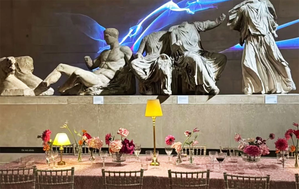 Η εκδήλωση «Pink Ball» του Βρετανικού Μουσείου διοργανώθηκε με στόχο, μεταξύ άλλων, να συγκεντρωθούν τα ποσά που θα υποστηρίξουν τις «διεθνείς συνεργασίες» του ιδρύματος, όπως ανέφερε το ίδιο σε ανακοίνωσή του («Κ», 15.10.2025). Στην εκδήλωση παρευρέθησαν 800 άτομα, μεταξύ των οποίων λαμπερά ονόματα της μόδας, της τέχνης κ.ά.Υπενθυμίζεται πως η Ελλάδα είχε αντιδράσει και τον Φεβρουάριο του 2024, όταν το Βρετανικό Μουσείο είχε φιλοξενήσει στην αίθουσα των Γλυπτών του Παρθενώνα επίδειξη μόδας του σχεδιαστή Ερντέμ Μοραλίογλου. Πρόσφατα, ο Μοραλίογλου ορίστηκε ως ένας από τους τρέχοντες επιτρόπους (Trustees) του βρετανικού ιδρύματος.