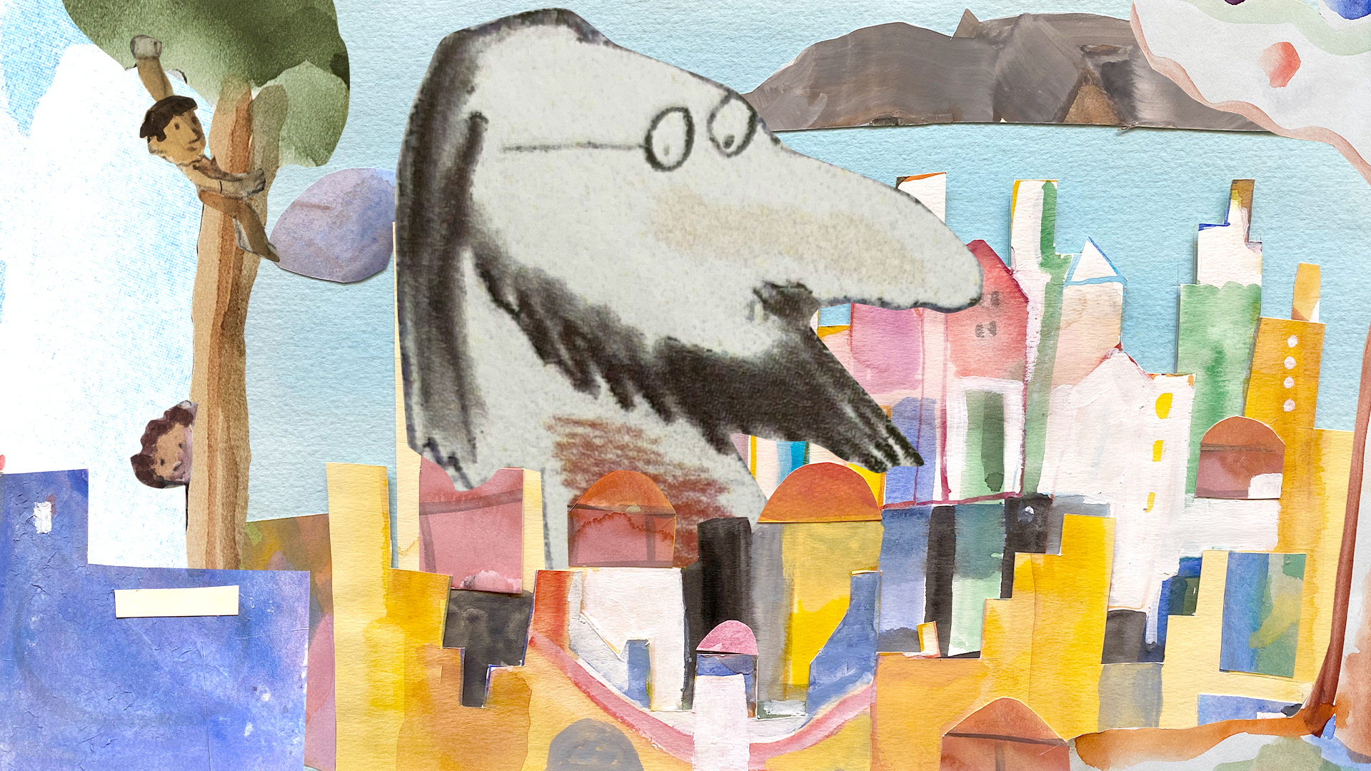 Μια φιγούρα ξεπροβάλλει από τα δεξιά του πλάνου, κρατώντας έναν προβολέα φιλμ βγαλμένο από άλλη εποχή. Φοράει κόκκινο παντελόνι, μοβ παλτό και ολοστρόγγυλα γυαλιά. Η λευκή γενειάδα και τα μαλλιά πιασμένα πίσω τον κάνουν αμέσως αναγνωρίσιμο: είναι ο Διονύσης Σαββόπουλος, σε μορφή κινουμένων σχεδίων. Ο προβολέας στήνεται, ανάβει και στο μαύρο φόντο εμφανίζεται μια φωτογραφία του «Νιόνιου» σε νεαρή ηλικία να παίζει κιθάρα.