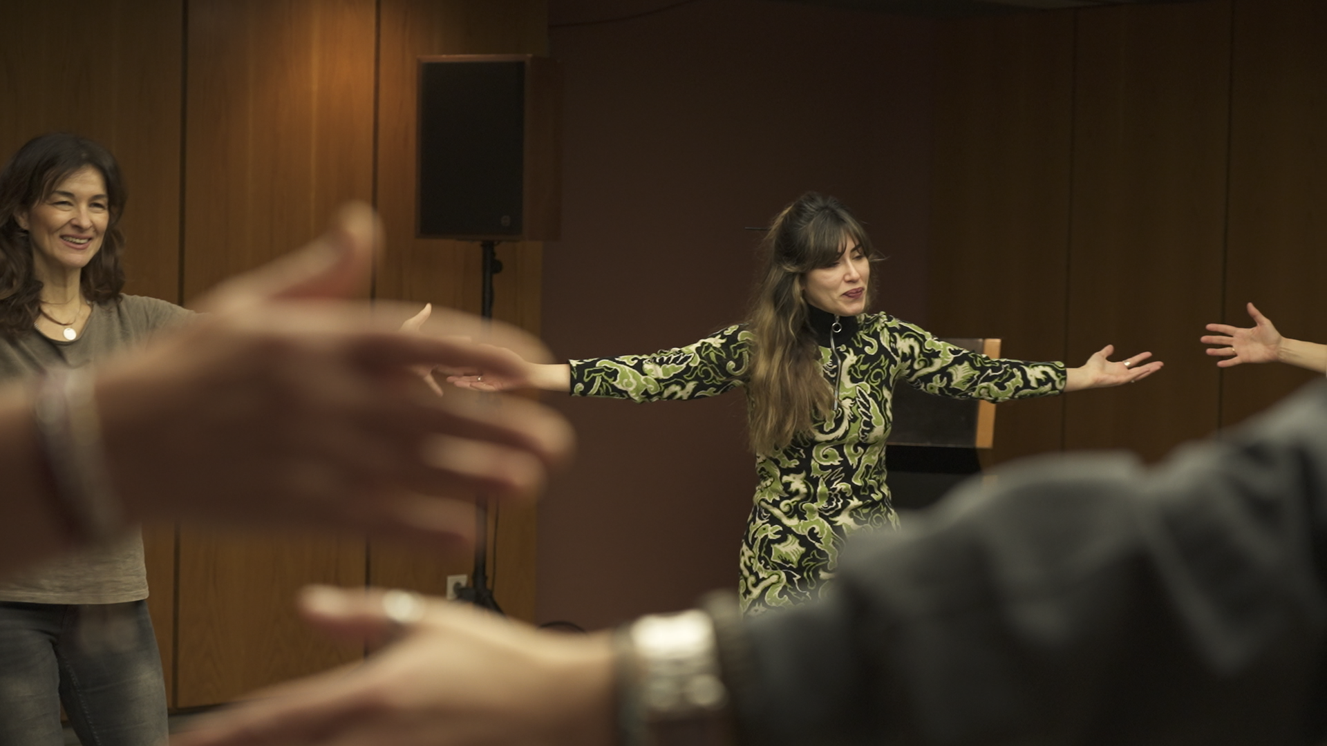 Από την πρώτη φάση, κιόλας, οι ψυχολόγοι συνεργάστηκαν στενά με μια ομάδα καλλιτεχνών, ώστε η μουσική εμπειρία να συνδέεται οργανικά με τις θεραπευτικές διαδικασίες. Η συνεργασία αυτή ενισχύθηκε ακόμη περισσότερο στη δεύτερη πιλοτική φάση, με τίτλο «Η μουσική ως αφορμή για αυτοέκφραση και δημιουργία», όπου το Μέγαρο υλοποίησε μουσικοχορευτικά και πολυμεσικά εργαστήρια, άμεσα συνδεδεμένα με τις παραστάσεις που είχαν προηγηθεί. «Θέλαμε οι άνθρωποι να σηκωθούν από την καρέκλα», μας λέει η κ. Χατζηγεωργίου. «Επιλέξαμε απλά καλλιτεχνικά στοιχεία που βοηθούν τους συμμετέχοντες να έρθουν σε επαφή με το σώμα τους και να αλληλεπιδράσουν, ξεκινώντας από πρωτογενή στοιχεία της μουσικής: τον παλμό, τον ρυθμό και την επαναληπτικότητα. Ο παλμός, για παράδειγμα, μιμείται τον παλμό της καρδιάς· όταν οι συμμετέχοντες τον ακολουθούσαν με το σώμα τους, συνδέονταν φυσικά μεταξύ τους», συνεχίζει.