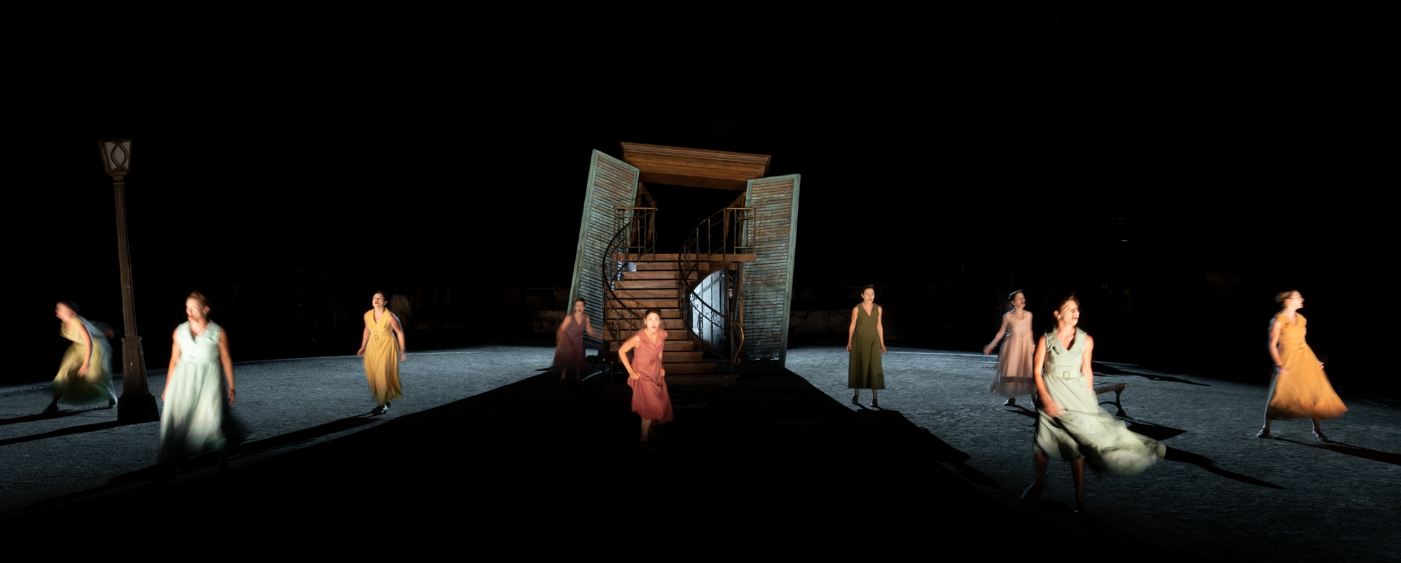 Η πρώτη εικόνα που αντίκριζε κανείς παρέπεμπε στην αισθητική του Μεσοπολέμου και, όπως ανέφερε στο σημείωμά του ο σκηνογράφος και ενδυματολόγος Πάρις Μέξης, στο έργο του Γιάννη Τσαρούχη. Αυτό τουλάχιστον θύμιζαν τόσο τα στρατιωτικά ρούχα του Ορέστη (Αναστάσης Ροϊλός), που επέστρεφε στις Μυκήνες για να εκδικηθεί τον φόνο του Αγαμέμνονα, όσο και τα φορέματα του Χορού, τον οποίο αποτελούσαν ευπρεπείς «κόρες αρχόντων». Η πύλη του παλατιού είχε επίσης κάτι από τη δεκαετία του ’30, ωστόσο βασικό χαρακτηριστικό της ήταν ότι εμφανιζόταν κυρτή, κλονισμένη, κυριευμένη από την Κλυταιμνήστρα (Ιωάννα Παππά). Η κόρη της η Ηλέκτρα (Λουκία Μιχαλοπούλου), εξαντλημένη από τον πόνο και τον θυμό για τον χαμό του πατέρα της, δεν είχε διάθεση να περάσει το κατώφλι κανενός ανακτόρου, αλλά να εκδικηθεί· και η ματαιότητα όπως και το τίμημα του σκοπού της, έμοιαζε να δίνει τον τόνο στην «Ηλέκτρα» του Σοφοκλή που παρουσίασε την Παρασκευή και το Σάββατο στην Επίδαυρο ο καλλιτεχνικός διευθυντής του Θεάτρου Πορεία, Δημήτρης Τάρλοου, στην πρώτη του σκηνοθεσία στο αργολικό θέατρο.