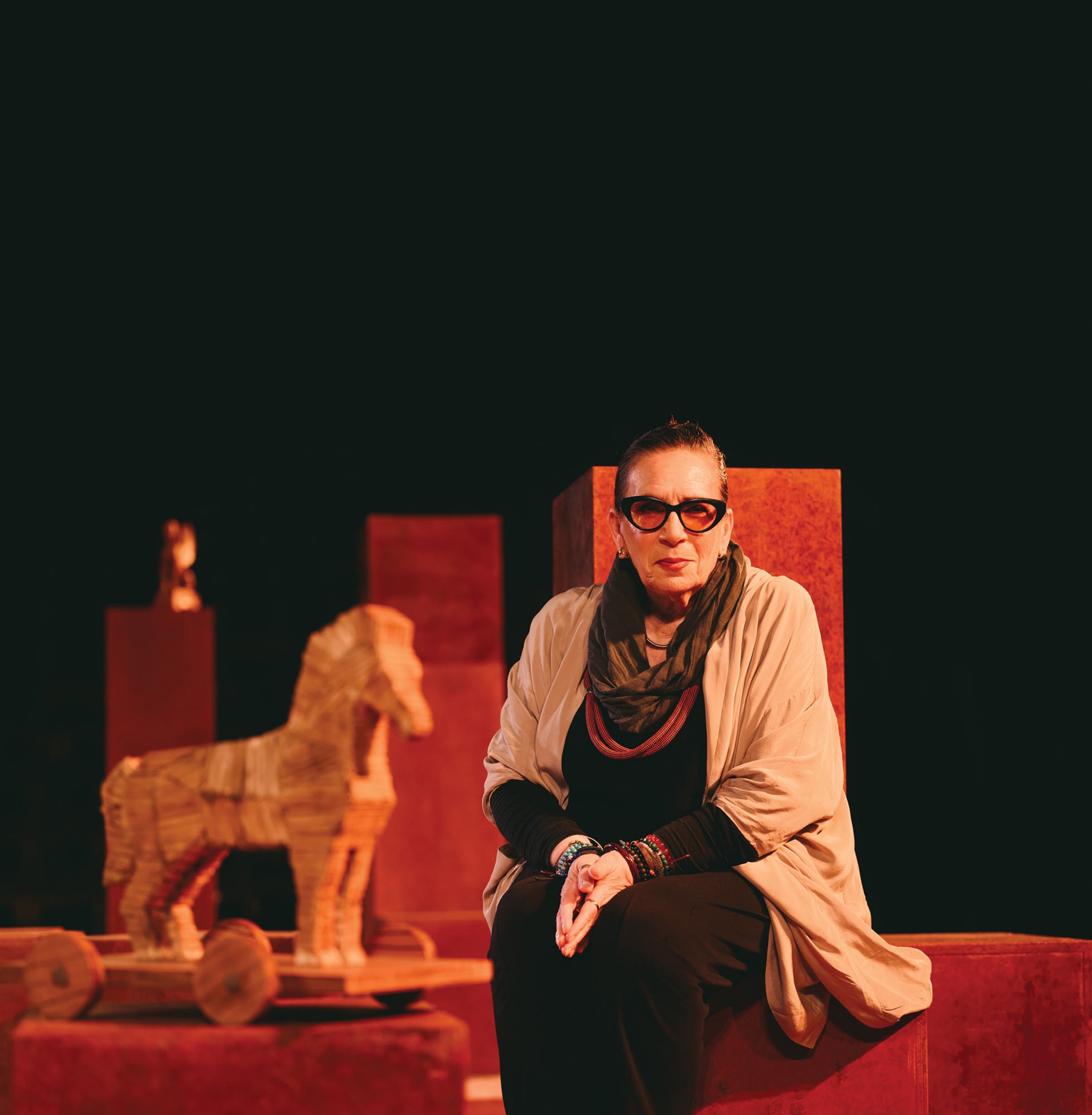 «Από τον Δούρειο Ιππο στον Πύργο του Αϊφελ μας πηγαίνει αυτή η παράσταση», τονίζει γελώντας η κ. Νικολακοπούλου, εξηγώντας ότι το έργο έχει αφετηρία τις «Τρωάδες» του Ευριπίδη, σε σκηνοθεσία Ανδρέα Βουτσινά, όπου η ίδια υπογράφει τα χορικά, δίνοντας φωνή στον συλλογικό θρήνο των γυναικών της Τροίας και καταλήγει στο «Εκτο πάτωμα» του Γάλλου συγγραφέα Αλφρέντ Ζερί, με πρωτότυπους στίχους για τον ρόλο της Αννας Παναγιωτοπούλου.