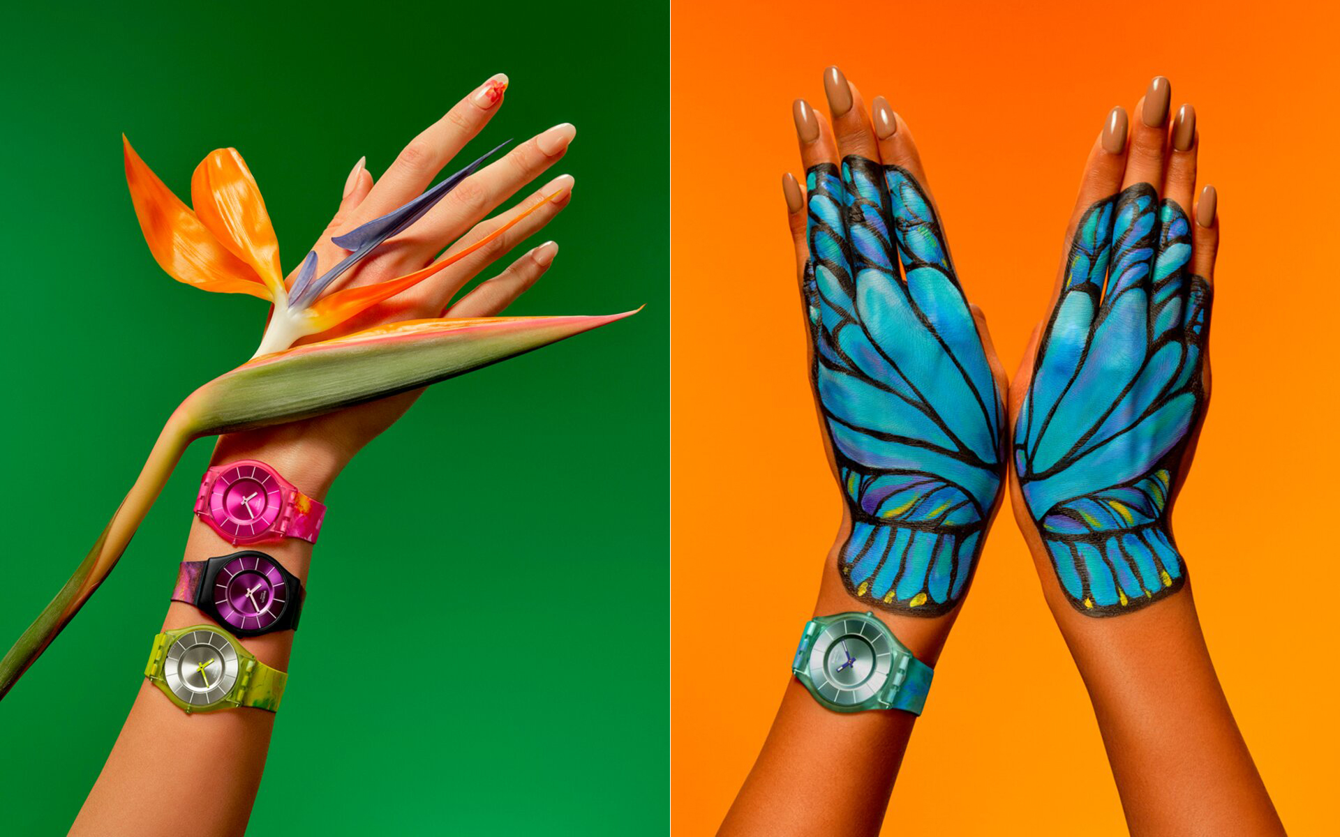 Η Swatch παρουσιάζει τη συλλογή Painted Paradise: τέσσερα εντυπωσιακά ρολόγια που αποπνέουν τροπική διάθεση χάρη στα μοναδικά χρώματα και τον ιδιαίτερο σχεδιασμό τους. Κάθε ρολόι της συλλογής αφηγείται τη δική του τροπική ιστορία μέσα από τα χρώματά του. Φαντάσου τιρκουάζ κύματα να συναντούν την απαλή άμμο ή το φως του ήλιου να διαχέεται μέσα από πλούσια πράσινα φυλλώματα που λικνίζονται απαλά στον αέρα. Φαντάσου τις ζωηρές αποχρώσεις εξωτικών λουλουδιών στο σούρουπο ή τα έντονα χρώματα τροπικών φρούτων απλωμένων πάνω σε ένα τραπέζι. Όλα τα ρολόγια της συλλογής αφηγούνται την ιστορία ενός τροπικού παραδείσου όπου ο χρόνος κυλά αργά και κάθε στιγμή είναι ανάλαφρη, ξέγνοιαστη και σκόπιμα απλή.