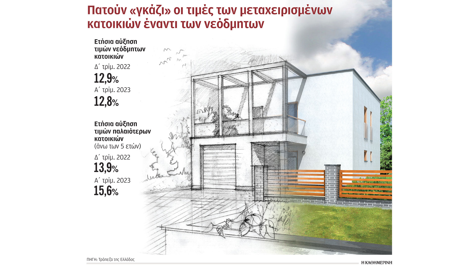 Πρόκειται για ένα φαινόμενο που άρχισε να καταγράφει και η Τράπεζα της Ελλάδος. Στην πρόσφατη ανάλυσή της για την αγορά ακινήτων, στο πλαίσιο της έκθεσης για τη νομισματική πολιτική, η ΤτΕ σημείωσε ότι «κατά τους πρώτους μήνες του 2023 η ελληνική αγορά ακινήτων συνεχίζει να καταγράφει υψηλούς ρυθμούς αύξησης των τιμών, ως αποτέλεσμα της έντονης ζήτησης και της περιορισμένης προσφοράς σύγχρονων ακινήτων. Επιπροσθέτως, η χαμηλή προσφορά σύγχρονων ακινήτων οδηγεί σταδιακά στη διάχυση των αυξήσεων των τιμών προς ακίνητα χαμηλότερων τεχνικών προδιαγραφών», τονίζει η ΤτΕ.