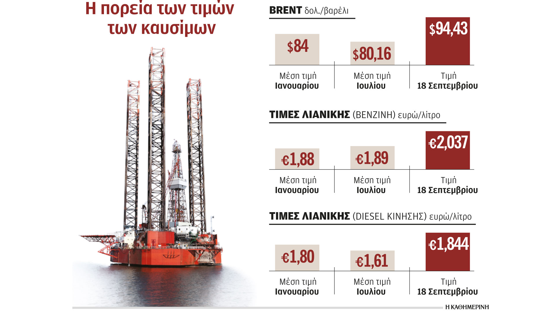 Παράγοντες της αγοράς δεν διαβλέπουν ανακοπή της αυξητικής πορείας των τιμών το επόμενο διάστημα, ενώ εκτιμούν ότι ένας βαρύς χειμώνας που θα προκαλέσει αύξηση της ζήτησης θα οδηγήσει σε νέα άνοδο, καθώς η αγορά τόσο του αργού όσο και του ντίζελ παραμένει σε στενότητα. Η μέση τιμή της αμόλυβδης στην εγχώρια αγορά εξακολουθεί να κινείται πάνω από τα 2 ευρώ/λίτρο (στα 2,037 ευρώ χθες). Στα Δωδεκάνησα η τιμή έχει σκαρφαλώσει στα 2,269 ευρώ/λίτρο και στις Κυκλάδες στα 2,195 ευρώ/λίτρο. Η μέση τιμή του ντίζελ κίνησης έφθασε στο 1,844 ευρώ/λίτρο.