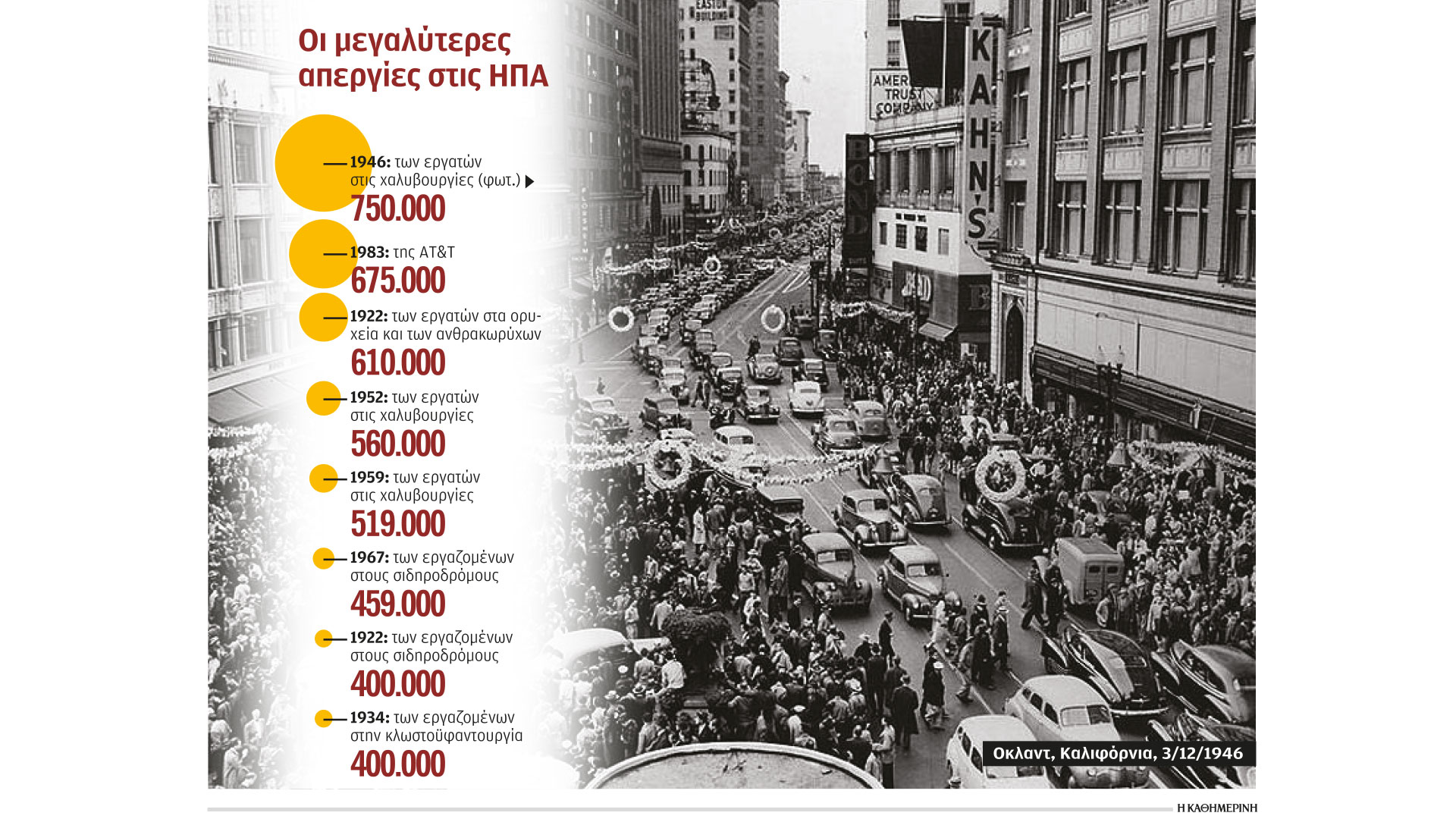 Από τους σεναριογράφους του Χόλιγουντ και τα 11.000 μέλη της Ενωσης Συγγραφέων της Αμερικής που από τις αρχές Μαΐου «πάγωσαν» τη μεγαλύτερη κινηματογραφική βιομηχανία στον κόσμο και τους 160.000 ηθοποιούς και εργαζόμενους σε ραδιόφωνο και τηλεόραση που έχουν προσχωρήσει στην απεργία από τον Ιούλιο, μέχρι το προσωπικό στις εγκαταστάσεις υγροποιημένου φυσικού αερίου (LNG) της Chevron στην Αυστραλία που διακόπτοντας την παραγωγή προκάλεσαν μέσα στο καλοκαίρι επανειλημμένως νέα άνοδο στις τιμές του αερίου. Από τους εργάτες των ηχηρότερων ονομάτων της αμερικανικής αυτοκινητοβιομηχανίας, General Motors και Ford, μέχρι το προσωπικό ευρωπαϊκών αεροπορικών εταιρειών και το προσωπικό εδάφους στα αεροδρόμια της Ιταλίας που απειλεί να τορπιλίσει τη διαχείριση των αποσκευών την επόμενη εβδομάδα. Από τους 330.000 υπαλλήλους της αμερικανικής πολυεθνικής διαχείρισης ναυτιλιακών και εφοδιαστικών αλυσίδων UPS που στα τέλη Αυγούστου πέτυχαν σε μεγάλο βαθμό ικανοποίηση των αιτημάτων τους, μέχρι τους εργαζoμένους στο μετρό του Παρισιού που απειλούν να προκαλέσουν χάος στις συγκοινωνίες τον επόμενο μήνα όταν θα είναι σε εξέλιξη το παγκόσμιο πρωτάθλημα ράγκμπι. Εκατοντάδες χιλιάδες εργαζόμενοι απεργούν.