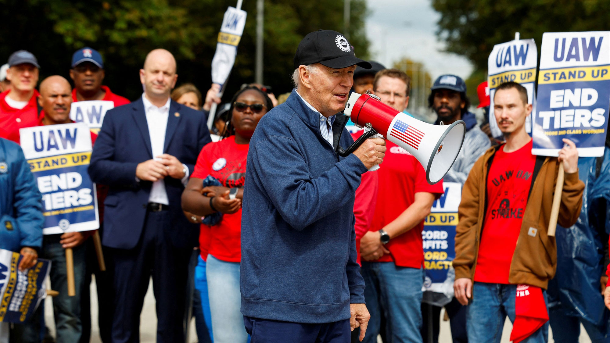 Ο Τζο Μπάιντεν έγινε την περασμένη εβδομάδα ο πρώτος εν ενεργεία πρόεδρος των ΗΠΑ που «συμμετείχε» σε απεργιακή κινητοποίηση, καθώς συναντήθηκε με εργαζομένους στις αυτοκινητοβιομηχανίες που απεργούν στο Μίσιγκαν. Η άνευ προηγουμένου επίσκεψη στους απεργούς του σωματείου United Auto Workers (UAW) ενίσχυσε τους σκοπούς των εργαζομένων ενάντια στους κολοσσούς General Motors, Ford και Stellantis, με τον Αμερικανό πρόεδρο να καλεί τους απεργούς να πιέσουν για καλύτερα συμβόλαια. «Εσείς σώσατε την αυτοκινητοβιομηχανία. Κάνατε πολλές θυσίες όταν οι εταιρείες είχαν πρόβλημα. Τώρα τα πάνε απίστευτα καλά. Και το ίδιο θα πρέπει να κάνετε και εσείς», διεμήνυσε.