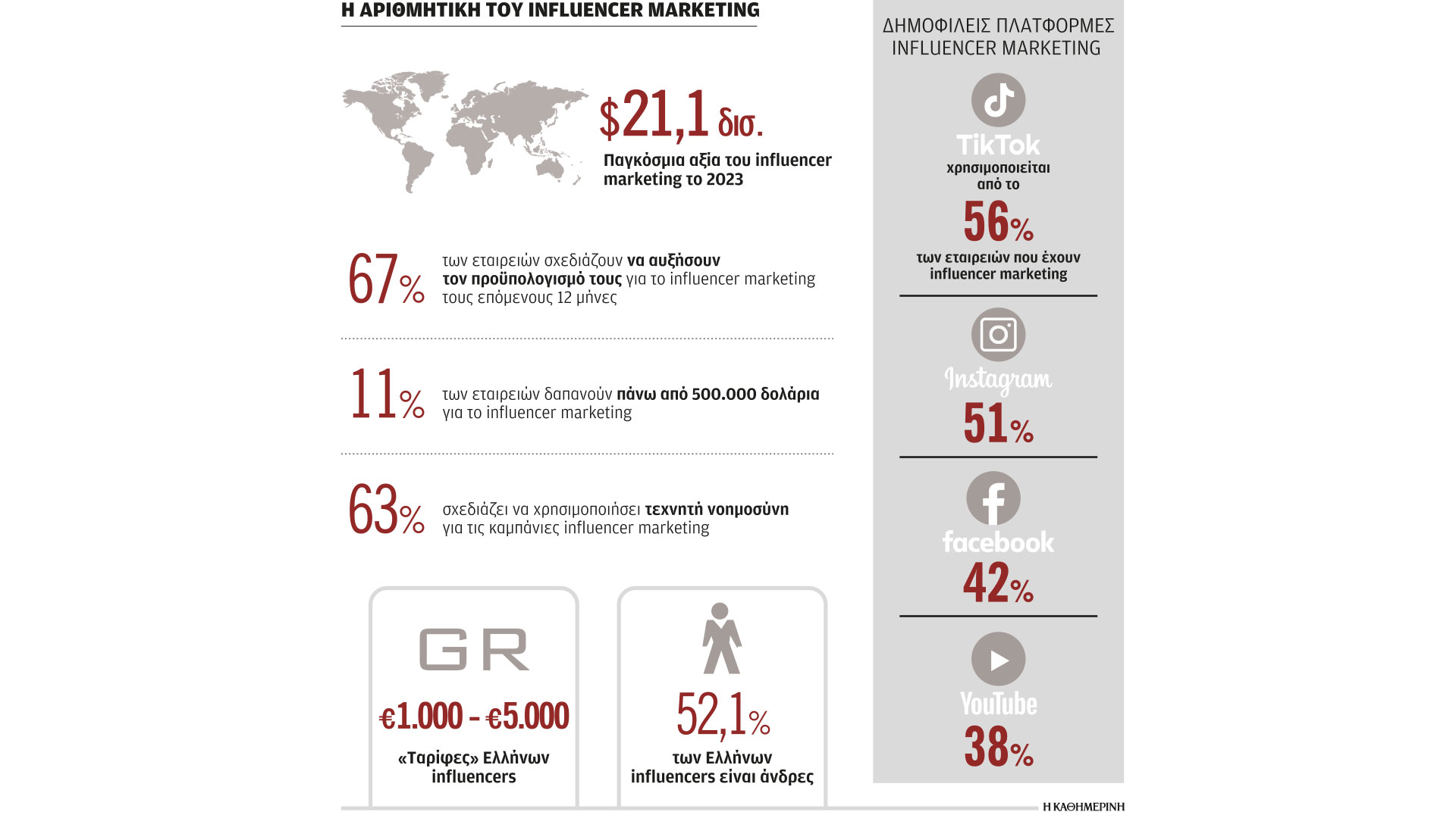Η αγορά των influencers παγκοσμίως εκτιμάται ότι θα φτάσει το 2023 στα 21,1 δισ. δολ. από 1,7 δισ. το 2016.