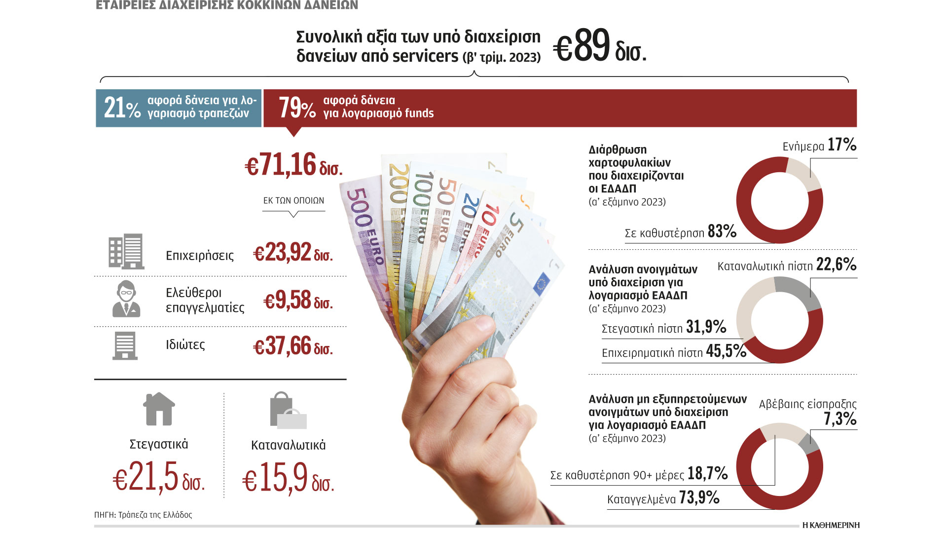 2,5 εκατ. δάνεια 1,5 εκατ. οφειλετών πέρασαν από τις τράπεζες στις εταιρείες διαχείρισης.