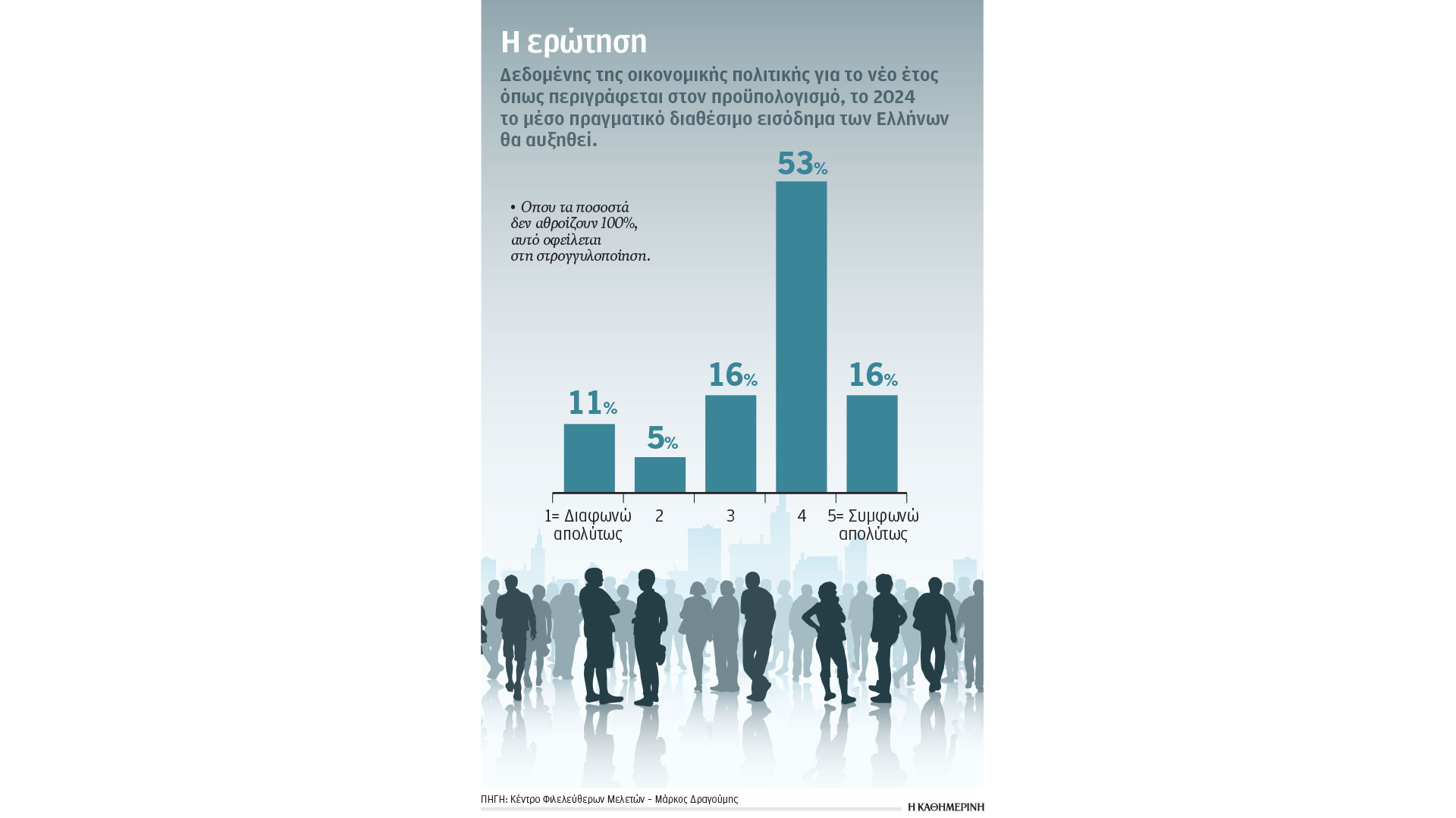 Σχεδόν επτά στους δέκα οικονομολόγους –μέλη του Ελληνικού Πάνελ Οικονομολόγων– αισιοδοξούν ότι το 2024 το μέσο πραγματικό εισόδημα των Ελλήνων θα αυξηθεί εφόσον εφαρμοστεί η οικονομική πολιτική για το νέο έτος, όπως αυτή περιγράφεται στον προϋπολογισμό.