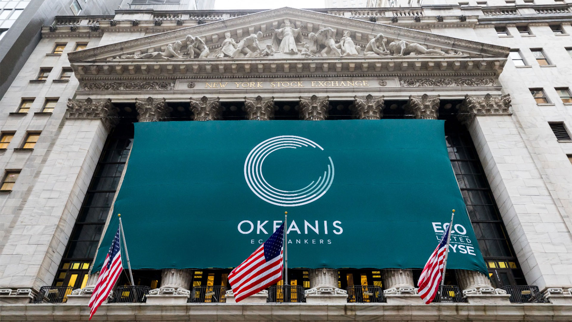 Επιστέγασμα των κορυφαίων επιδόσεων, ακόμη και σε σύγκριση με το σύνολο των ομοειδών εισηγμένων εταιρειών δεξαμενόπλοιων, αποτελεί η είσοδος της Okeanis Eco Tankers Corp. στο χρηματιστήριο της Νέας Υόρκης. Οι μετοχές της ναυτιλιακής άρχισαν να διαπραγματεύονται στις 11 Δεκεμβρίου 2023 στο NYSE με τον κωδικό «ECO», με τον ιδρυτή της Okeanis Eco Tankers Ιωάννη Αλαφούζο να χτυπάει, πριν από μερικές ημέρες, το καμπανάκι για την έναρξη της συνεδρίασης της Wall Street στη Νέα Υόρκη. Πρόκειται για παράλληλη διαπραγμάτευση, καθώς οι μετοχές της εταιρείας διαπραγματεύονται και στο χρηματιστήριο του Οσλο, ήδη από το 2018. Μετά την εισαγωγή στο χρηματιστήριο της Νέας Υόρκης, οι μετοχές της Okeanis είναι δευτερεύουσες στο Oslo Bors.