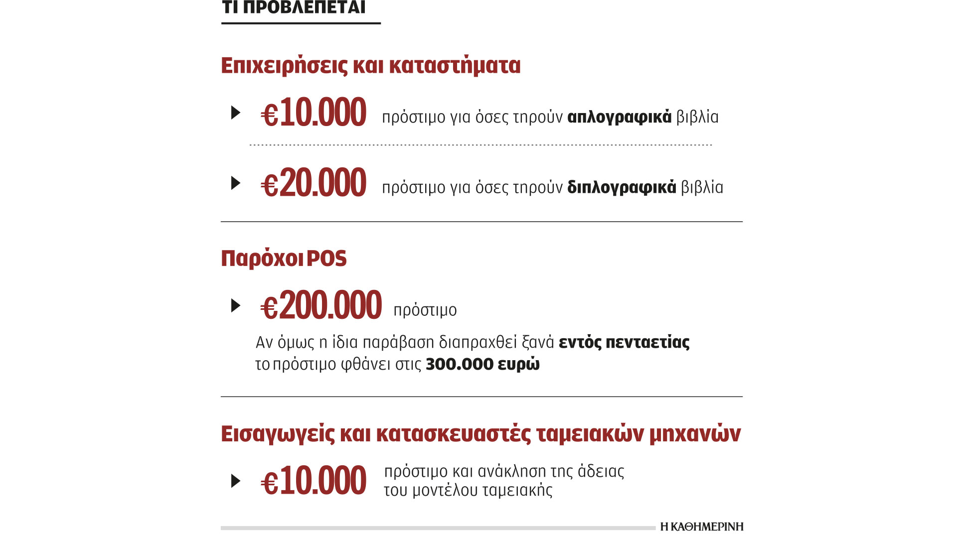 1. Επιχειρήσεις. Για όσες καθυστερήσουν να διασυνδέσουν τα συστήματά τους προβλέπεται: