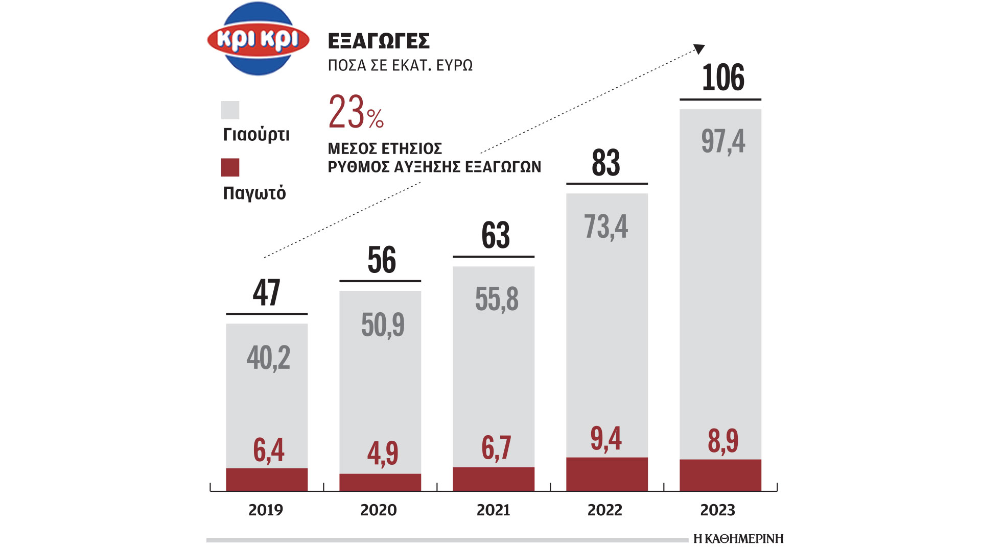 Ανάπτυξη άνω του 10% αναμένει για το 2024 η «Κρι Κρι» με όχημα κυρίως την περαιτέρω αύξηση των εξαγωγών, με ενίσχυση της παρουσίας της τόσο στις αγορές όπου ήδη βρίσκεται όσο και με την είσοδο σε νέες αγορές, όπως αυτές των ΗΠΑ, της Νορβηγίας, της Σιγκαπούρης και της Ταϊβάν. Μάλιστα στο εξωτερικό η «Κρι Κρι» φιλοδοξεί να ενισχύσει την παρουσία της όχι μόνο μέσω του γιαουρτιού, αλλά και μέσω του Greek frozen yogurt, το οποίο παντρεύει ιδανικά τα δύο βασικά προϊόντα της, το γιαούρτι και το παγωτό. Ειδικά όσον αφορά τις ΗΠΑ, η εταιρεία βρίσκεται σε προχωρημένες διαπραγματεύσεις με τη Walmart προκειμένου τα προϊόντα της να βρίσκονται στα ψυγεία της αλυσίδας από το επόμενο έτος. Σημειώνεται ότι το 2023 έκλεισε με σημαντική αύξηση των εξαγωγών για την «Κρι Κρι», κατά 32% σε αξία και κατά 25% σε όγκο. Αξίζει να αναφερθεί ότι οι πωλήσεις εκτός Ελλάδας για τη σερραϊκή γαλακτοβιομηχανία αντιστοιχούν στο 50% του τζίρου της, ο οποίος συνολικά για το 2023 εκτιμάται σε περίπου 217 εκατ. ευρώ. Σήμερα η εταιρεία εξάγει τα προϊόντα της σε πάνω από 42 χώρες, προϊόντα τόσο επώνυμα όσο και ιδιωτικής ετικέτας για μεγάλες αλυσίδες σούπερ μάρκετ σε Ιταλία, Αγγλία, Γερμανία κ.α.