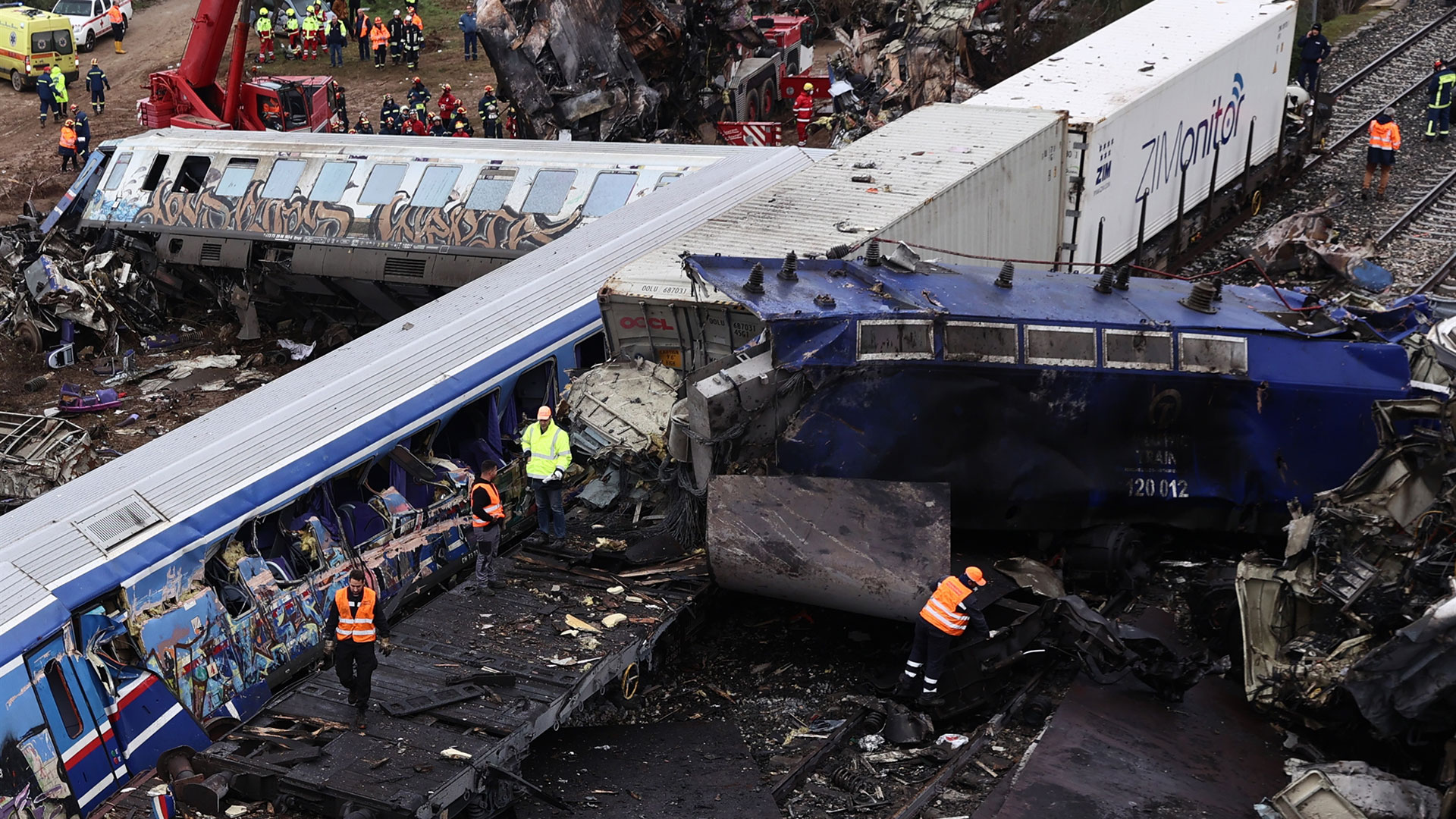 Παρακμή που δεν αντανακλάται πλέον σε καθυστερήσεις στα δρομολόγια, στο κακό τροχαίο υλικό –που φτάνει να βγάζει εν κινήσει καπνούς, όπως συνέβη πρόσφατα με τον Προαστιακό Πάτρας– ή στις ασυντήρητες και ελλιπείς υποδομές, αλλά στην απώλεια 57 ανθρώπων.