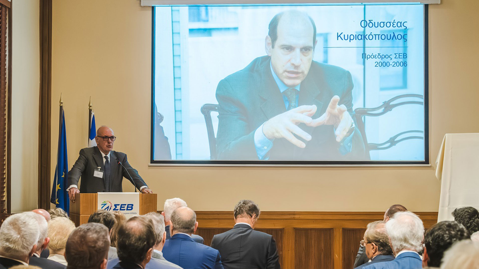«Αλλαξε τον ΣΕΒ χτίζοντας συγχρόνως τις σχέσεις του οργανισμού με όλους από την πολιτική, τον συνδικαλισμό, τα μέσα μαζικής ενημέρωσης, την ίδια την κοινωνία», ανέφερε χαρακτηριστικά ο κ. Ευθύμιος Βιδάλης, πρόεδρος της Εκτελεστικής Επιτροπής του ΣΕΒ, στη διάρκεια της ειδικής συνεδρίασης του Γενικού Συμβουλίου του ΣΕΒ που πραγματοποιήθηκε την περασμένη Πέμπτη 4 Απριλίου, η οποία ήταν αφιερωμένη στην προσφορά του Οδυσσέα Κυριακόπουλου.