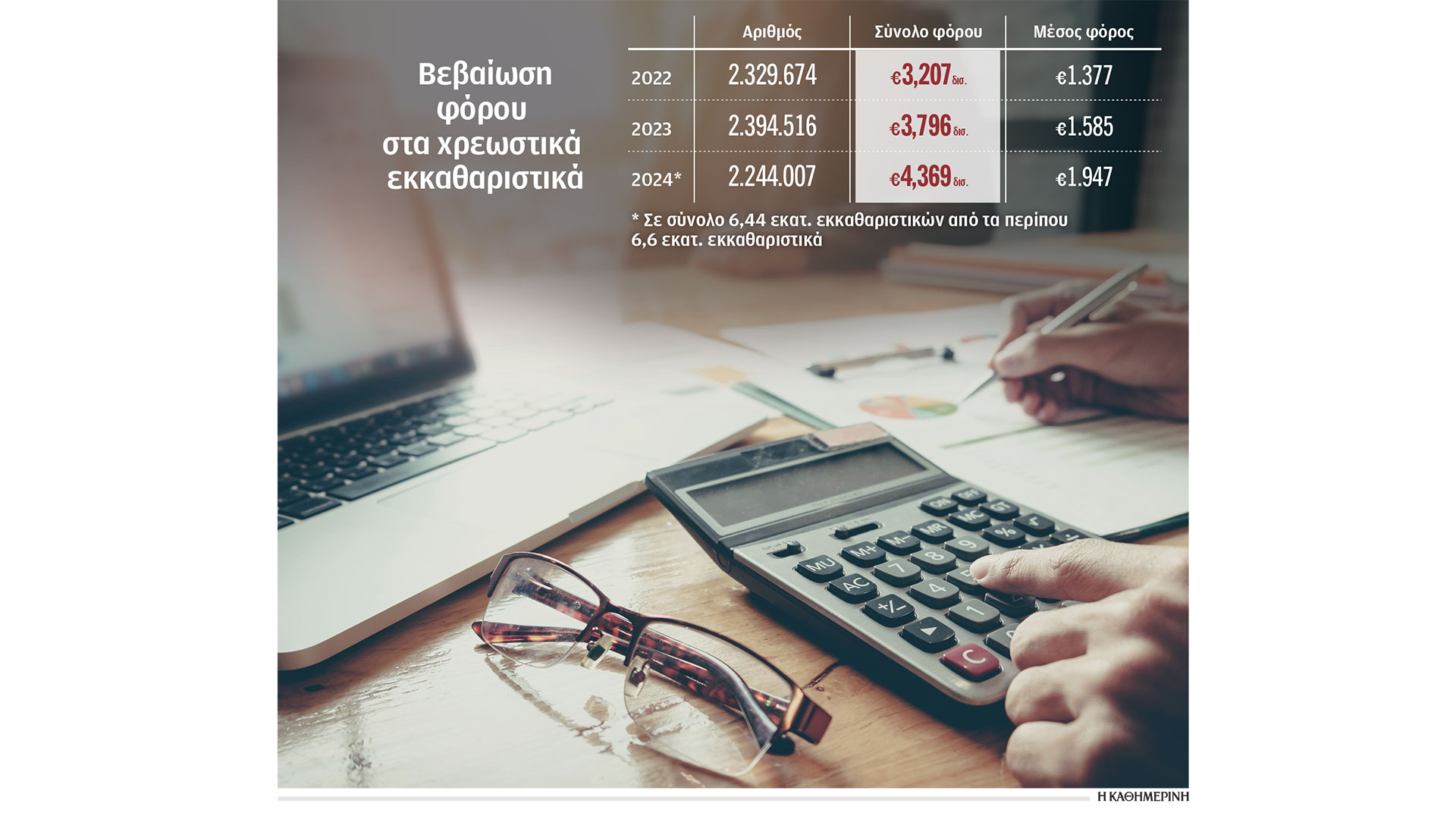 Το μέσο χρεωστικό σημείωμα φτάνει στις 2.000 ευρώ – Μέσα σε δύο χρόνια οι βεβαιωθέντες φόροι αυξήθηκαν κατά 1,2 δισ. ευρώ.