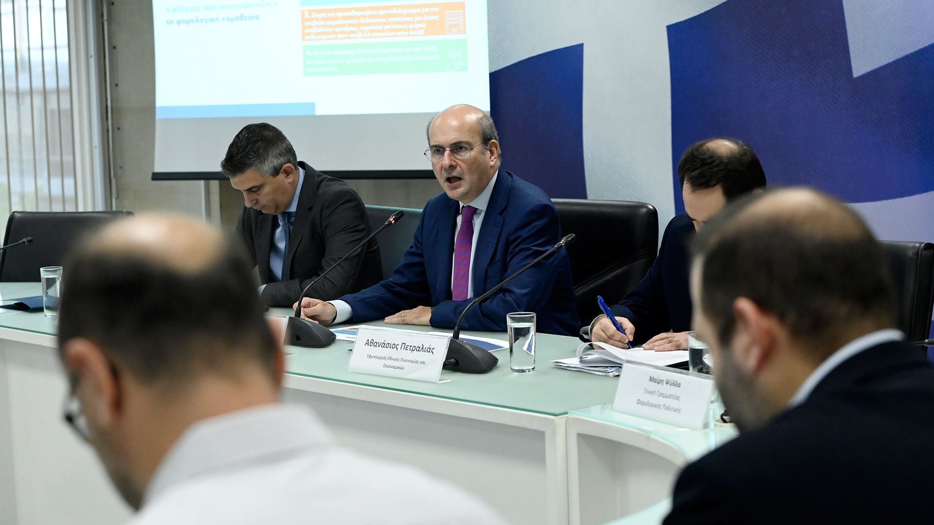 Το νέο φορολογικό νομοσχέδιο παρουσίασαν σήμερα ο υπουργός Εθνικής Οικονομίας και Οικονομικών Κωστής Χατζηδάκης και οι υφυπουργοί, Χρίστος Δήμας και Θάνος Πετραλιάς.