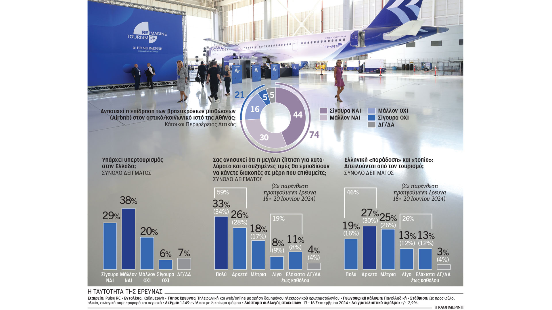 «Η έρευνα δείχνει ότι οι απόψεις των συμπολιτών μας είναι ισορροπημένες. Αναγνωρίζουν τη σημασία του τουρισμού και ζητούν ακόμη μεγαλύτερη ανάπτυξη προς τη σωστή κατεύθυνση», σχολίασε ο γενικός διευθυντής της Pulse, Γιώργος Αράπογλου.