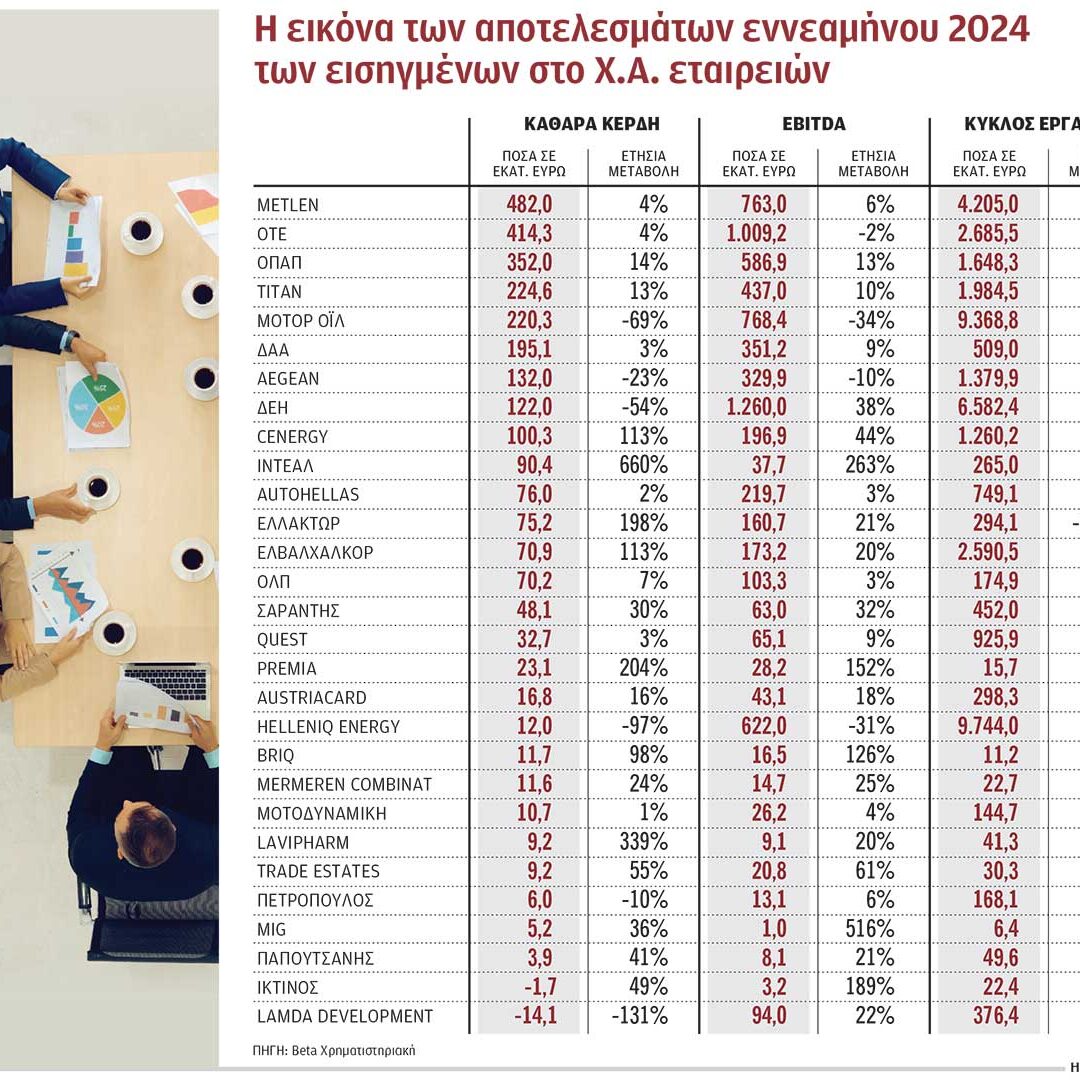 Η συνολική εικόνα της λειτουργικής κερδοφορίας είναι επίσης παρόμοια με αυτή του περασμένου έτους, καθώς τα συνολικά EBITDA κινούνται στα 7,425 δισ. ευρώ έναντι 7,394 δισ. ευρώ για τις ίδιες εισηγμένες στο εννεάμηνο του 2023. Επίσης, άνοδο της τάξης του 4% καταγράφει ο συνολικός κύκλος εργασιών, καθώς διαμορφώνεται στα 46,006 δισ. ευρώ έναντι 44,304 δισ. ευρώ στο εννεάμηνο του περυσινού έτους.