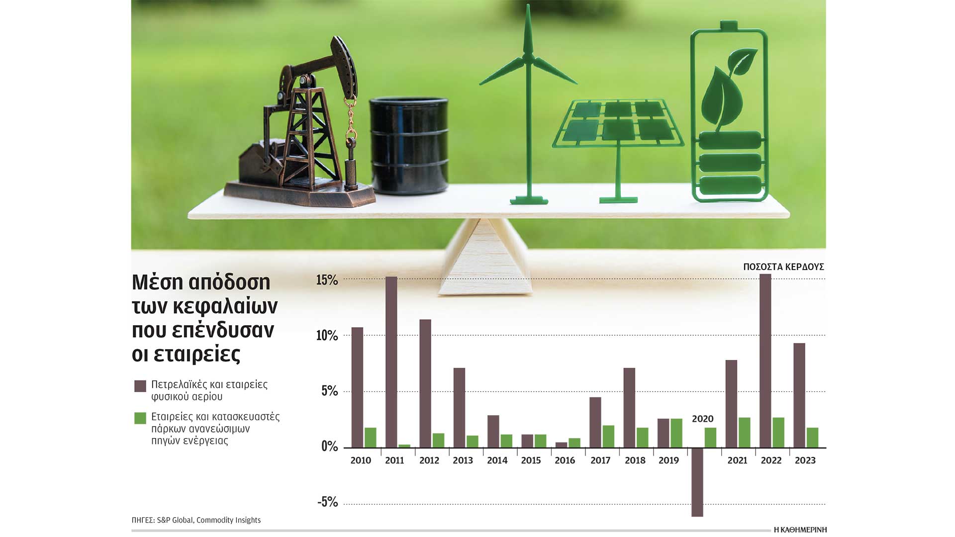 Την τάση είχε καταγράψει από το περασμένο έτος η Global Data, εταιρεία δεδομένων και αναλύσεων, και είχε προβλέψει ότι θα συνεχιστεί και θα ενταθεί μέσα στο 2024. Οπως και μεγάλο μέρος των αναλυτών του κλάδου, την απέδιδε κατά κύριο λόγο στην ενεργειακή κρίση που προέκυψε μετά την εισβολή της Ρωσίας στην Ουκρανία, τονίζοντας ότι «ο πόλεμος στην Ουκρανία ενέτεινε την παγκόσμια ανησυχία για την ενεργειακή ασφάλεια και τα προβλήματα στις εφοδιαστικές αλυσίδες εξώθησαν τις χώρες να στραφούν στα ορυκτά καύσιμα, με αποτέλεσμα να εκτοξευθεί η ζήτηση για πετρέλαιο και φυσικό αέριο». Οι επικεφαλής των πετρελαϊκών κολοσσών δεν κρύβουν, πάντως, ότι το κίνητρό τους είναι η κερδοφορία και η απόδοση των επενδύσεών τους, που υπερτερούν σαφώς όταν οι επενδύσεις γίνονται σε ορυκτά καύσιμα και όχι σε ανανεώσιμες πηγές. Μιλώντας προσφάτως στους New York Times, ο Μάρεϊ Αουχίνκλος, διευθύνων σύμβουλος της ΒΡ, ήταν απολύτως σαφής, καθώς τόνισε πως προτεραιότητα της εταιρείας είναι το κέρδος γι’ αυτό «θα επικεντρώνεται στην απόδοση των επενδύσεών της και θα διασφαλίζει πως οι νέες επιχειρήσεις μας θα μπορούν να ανταγωνιστούν για την προσέλκυση κεφαλαίων».